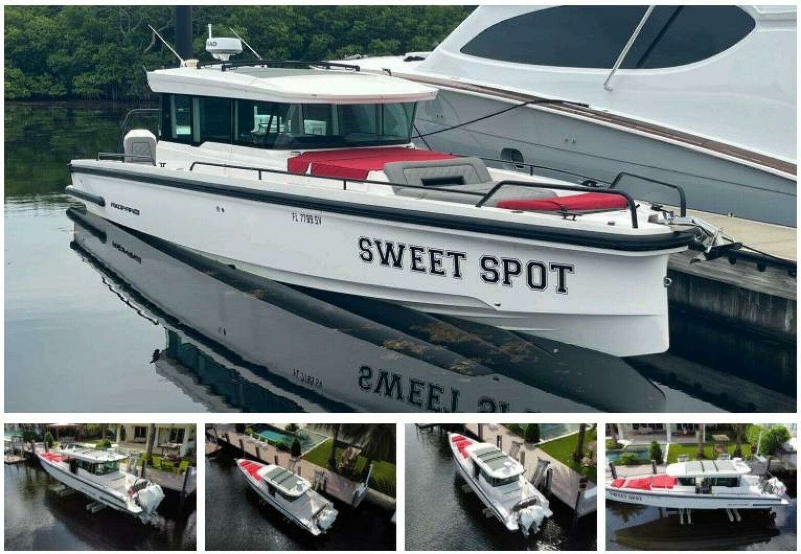 *All service is up to date: ~ Lift Kept Out of the water ~ Captain Maintained ~ Turn Key Ready To Go Boating* Twin Mercury Verado V8 300hp ~ Only 225 hours ~ 9/2025 Stainless Steel Propellers Motors Flushed After Every Use Complete Service Up to Date 8/4/2025 Cold Fusion White Cowling Bottom Paint 10/16/2023 Newer Batteries ~ Bow Thruster ~ House ~ Engine ~ A/C Waxed & Detailed Brabus Trim Grey Seating ~ Red Covers Black Rails & Trim "Brabus Edition" Hull: Twin Step Sharp Entry Trim Tabs Underwater Lights