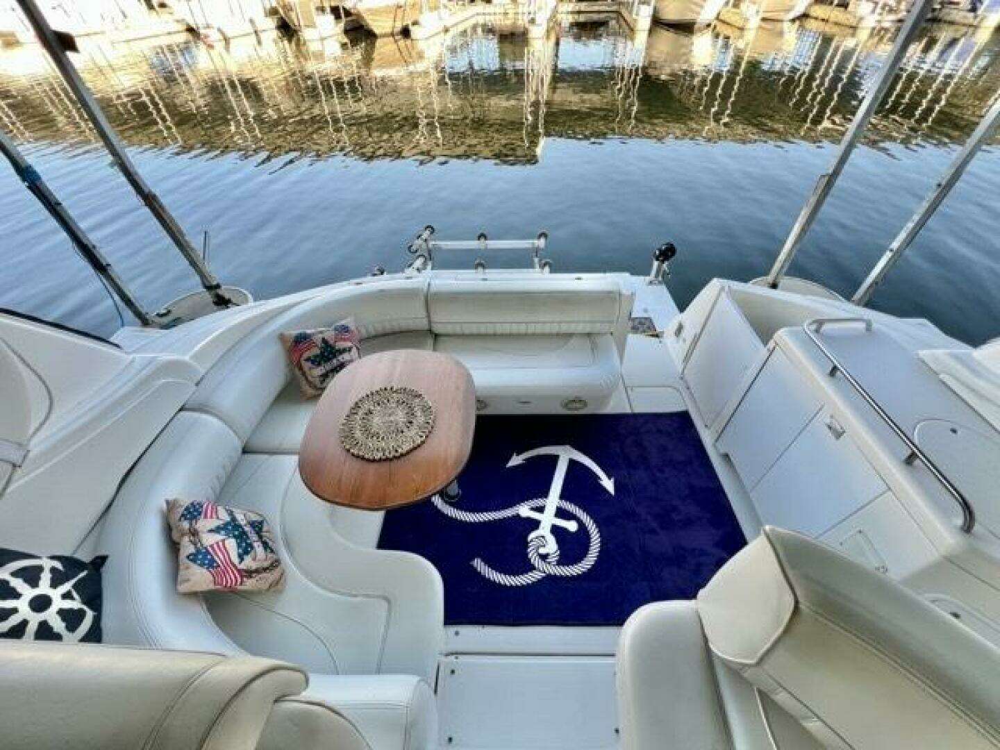 Partnership, a 2003 Cruisers 3772 Express is an impressive cruiser. The 3772 features a sleek express exterior with plenty of cockpit space and a well-thought-out layout, effectively combining abovedeck comfort with a sweet, performance-driven profile. And, down below, the 3772 truly outshines other boats in its class. With the single stateroom layout, the 3772 achieves a "family-room" feel. The airy salon is one wide-open living space from the forward stateroom - which can be closed off by either a standard privacy curtain to the comfortable, easily convertible aft settee. The 3772 is able to comfortably provide sleeping accommodations for five people and has a generous 6-foot, 6-inch headroom. Some other features that sets this cruiser apart from similar size competitors is her diesel motors, separate shower, and walk thru windshield. Whether you are looking for a day boat or one to go cruising on this 3772 is a great consideration. She is a loop veteran and could easily go around again.