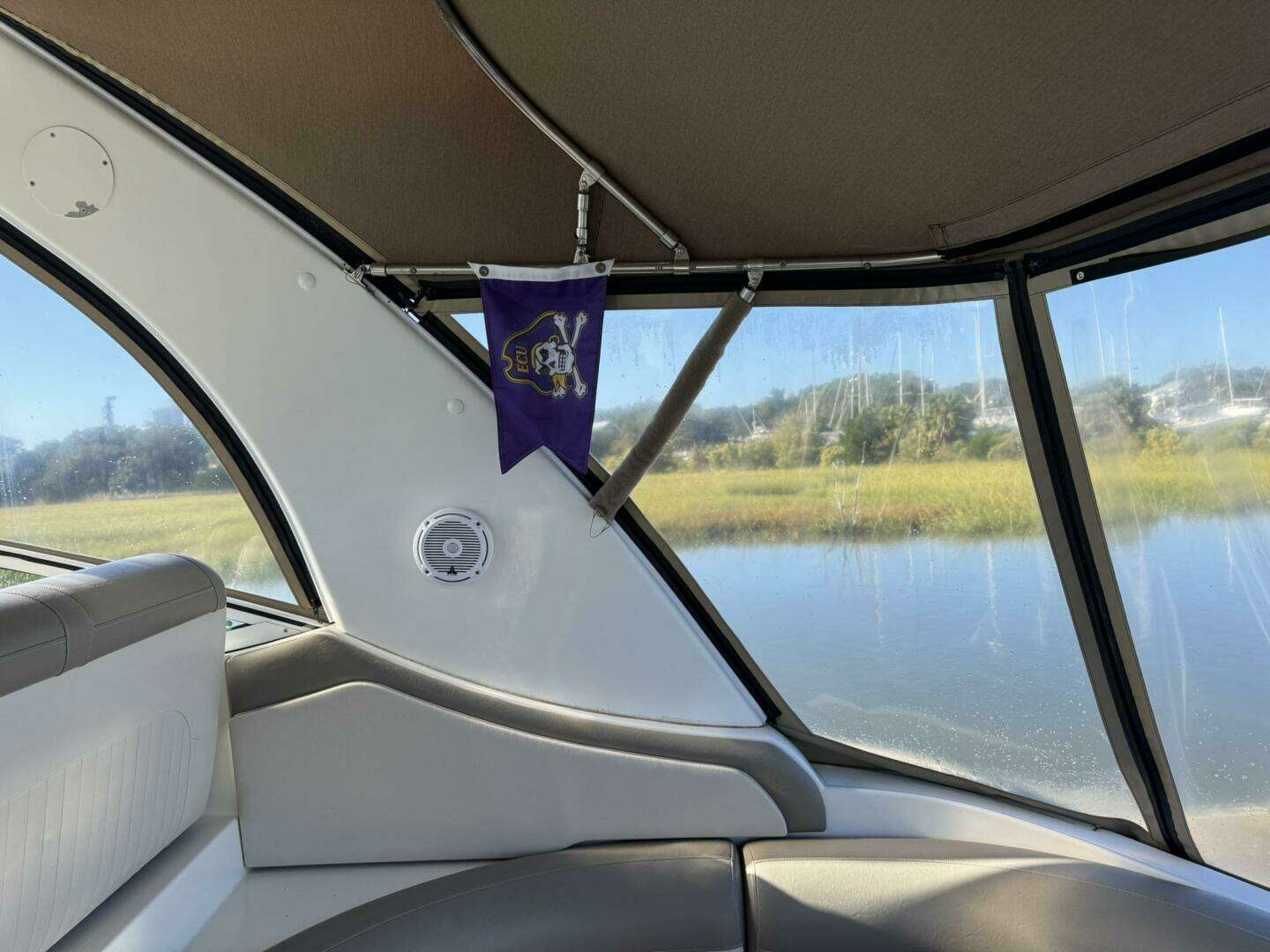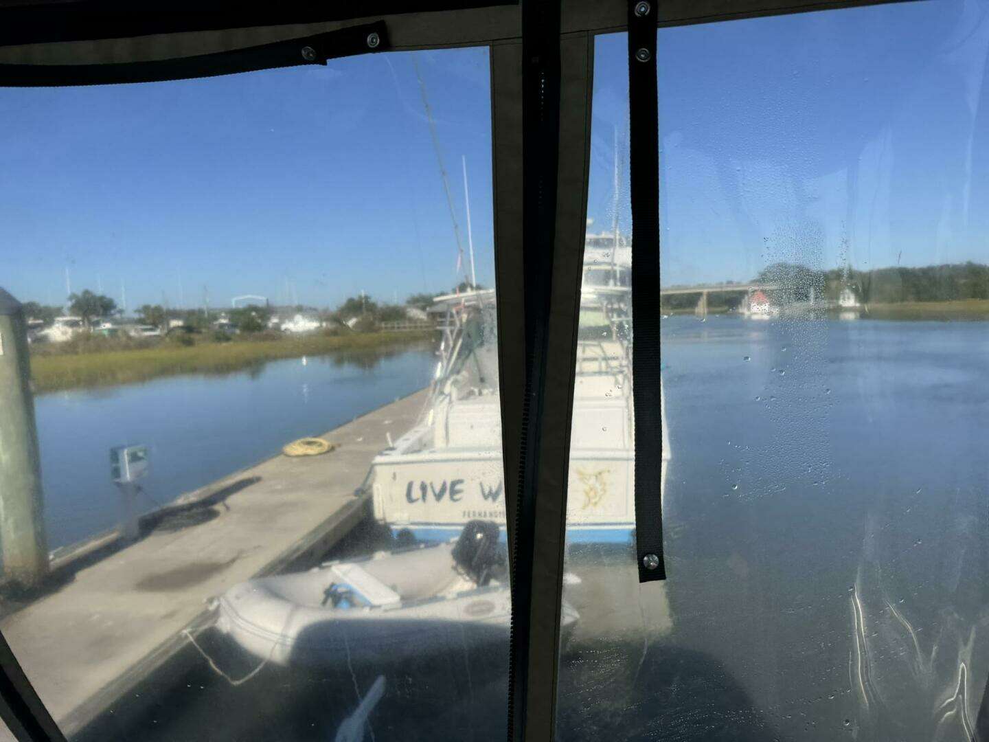 system, spotlight, windlass, and a camper canvas package. The cockpit is open and inviting,