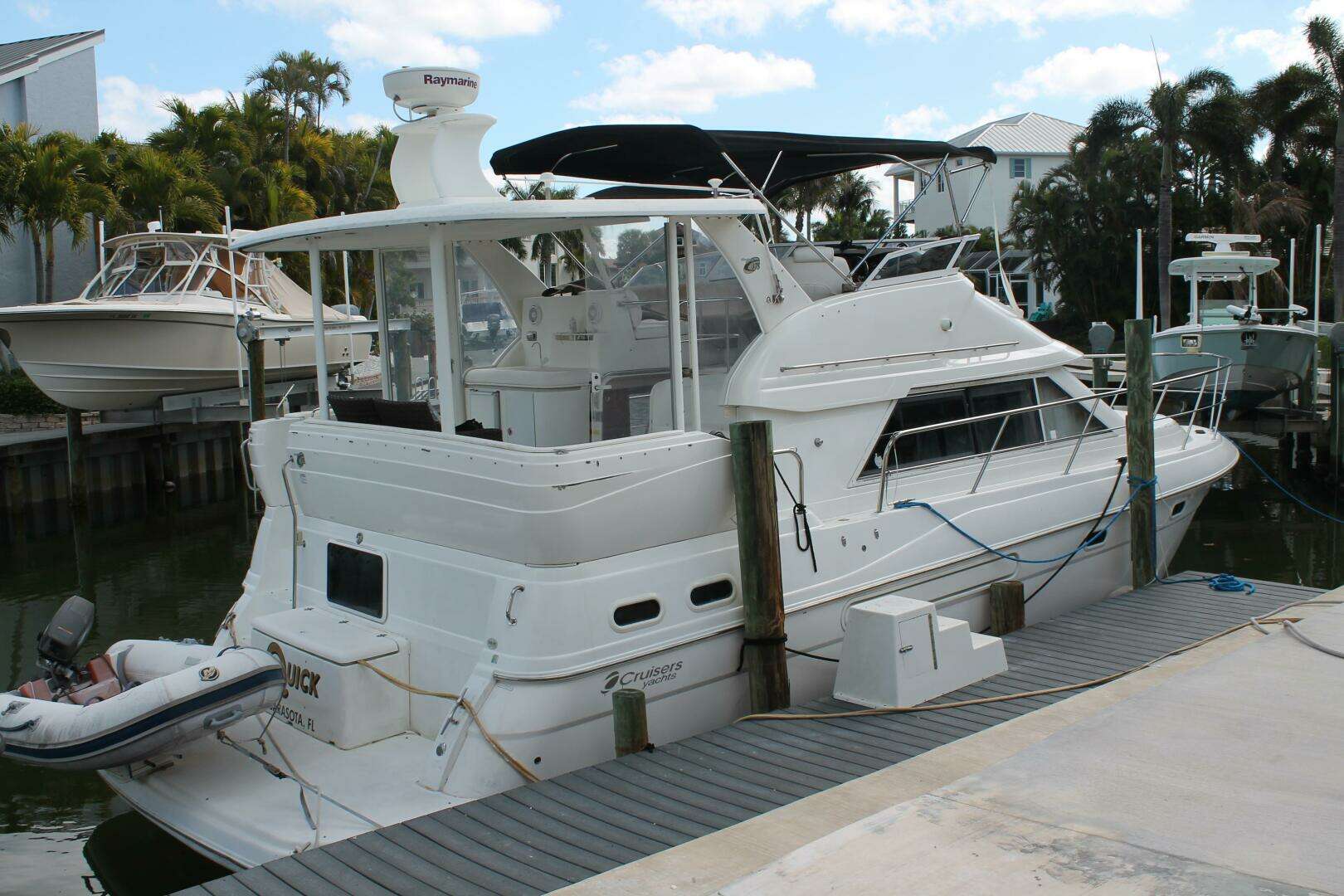 2004 Cruisers Yacht aft cabin with Volvo diesels. They are the high output motors at 375hp each. They have approximately 1550 hours each. The Onan diesel genset has 1050 hours. She is equipped with a stern thruster and has a brand new bottom job as of January 2026, and has been owned by the same owner past 8 years. She is a great live aboard or loop/cruising vessel. The boat features a full working galley and dinette area and 2 large staterooms with separate heads. The master has a tub as well. The bridge area is large for a boat her size and walks down to an open aft section for entertaining. Contact me with any questions 941-650-0354 Gary