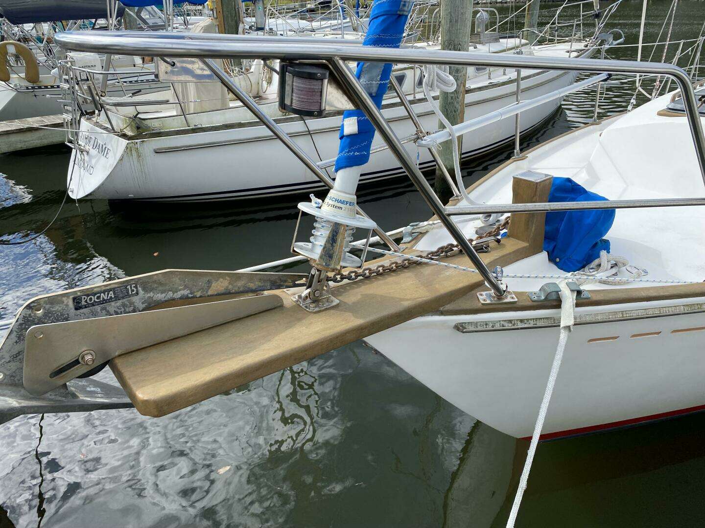 -sails are in nice shape. Main sail is three years, also features and easy to use stack pack, Harken roller furling