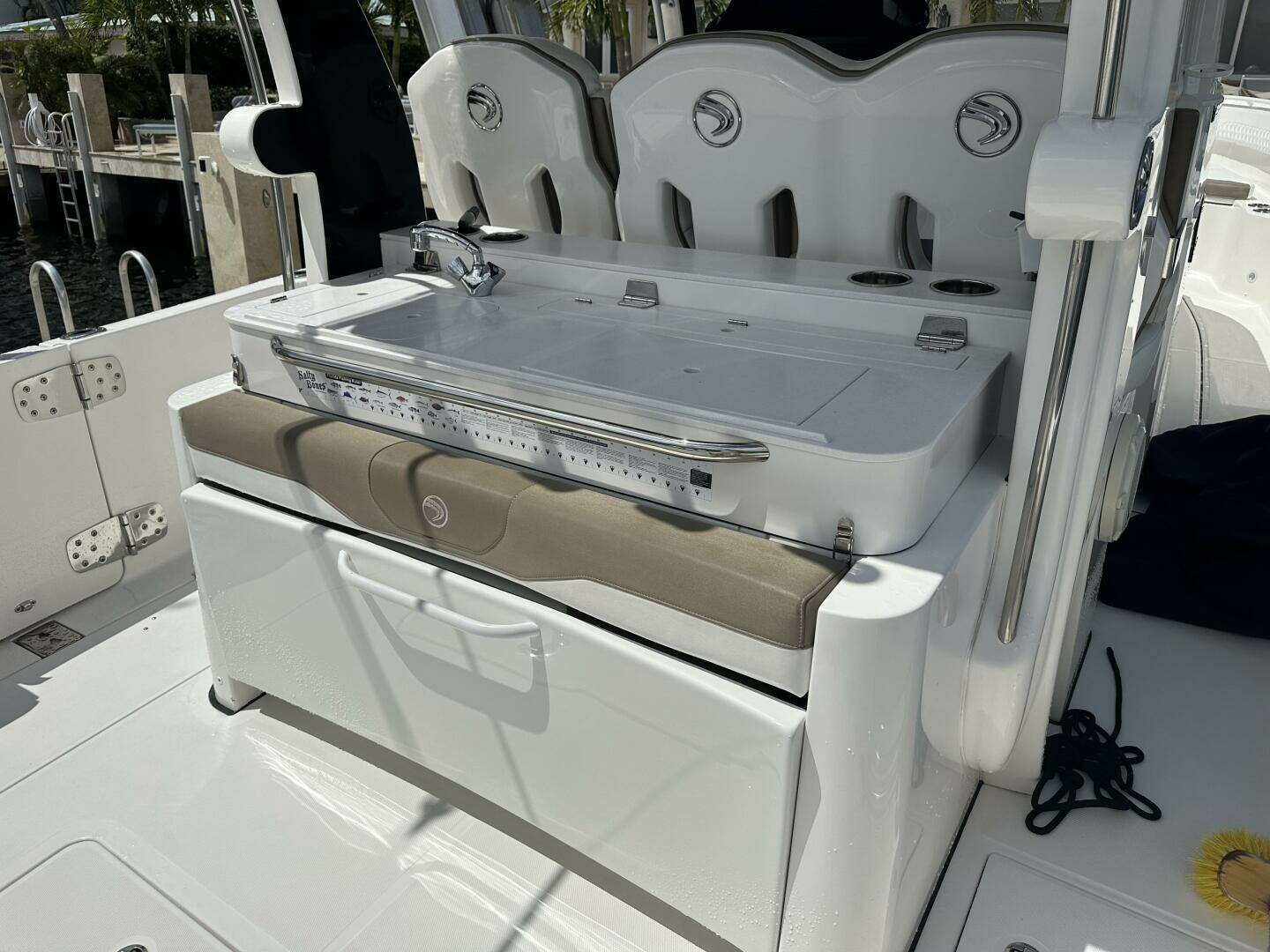 - Transom fish box with sink