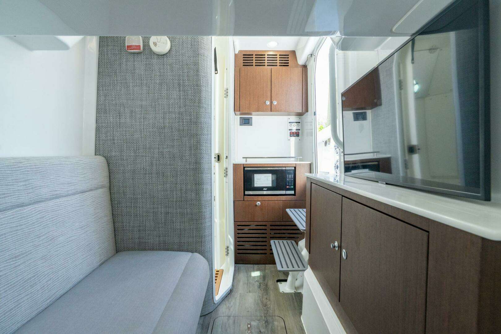 - Slide out filler cushion to create twin sized berth