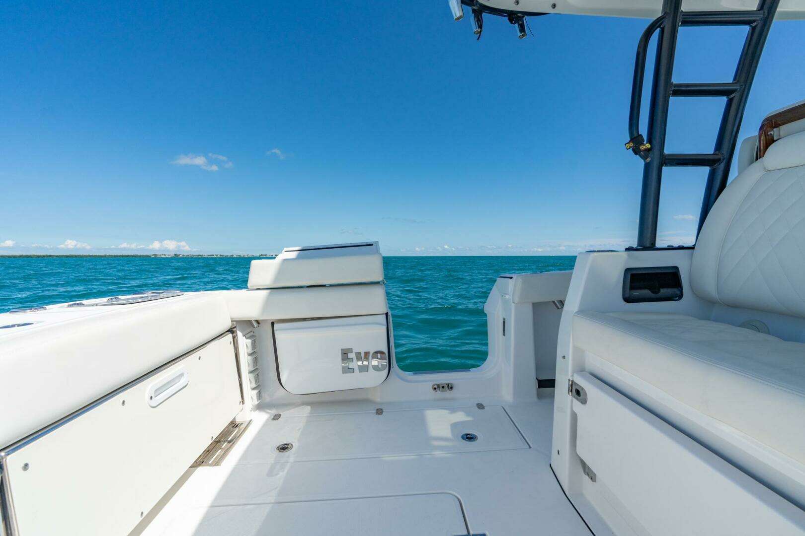 - Aft facing mezzanine seating with handrails (2), cup holders (2), insulated storage tub, tackle storage bins (2), and wireless phone chargers (2)