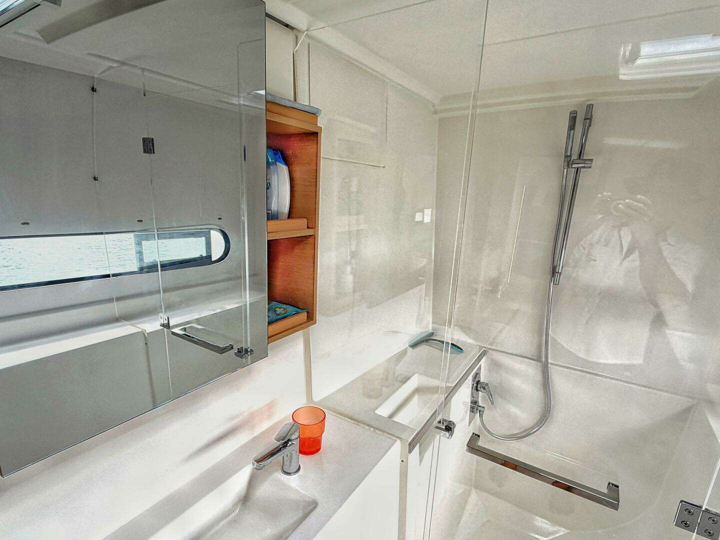 Performance is enhanced by a larger standard sail area than comparable cruising catamarans, and this vessel includes the Pulse Line option with a taller mast and increased upwind sail area for improved light-wind capability. Constructed using vacuum infusion with balsa coring above the waterline and on deck, Pegasus achieves an excellent balance of strength and lightness. The mini keels are designed to share in a major side impact without compromising hull integrity.
