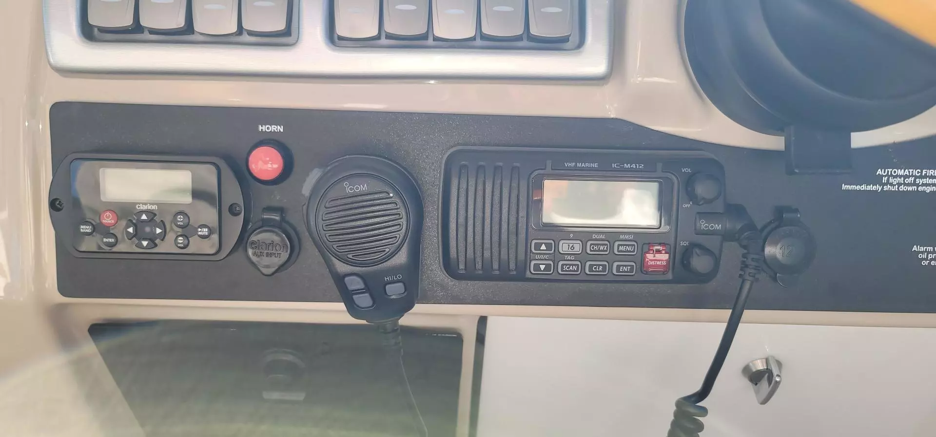- Clarion waterproof dash-mounted multi-feature stereo remote control