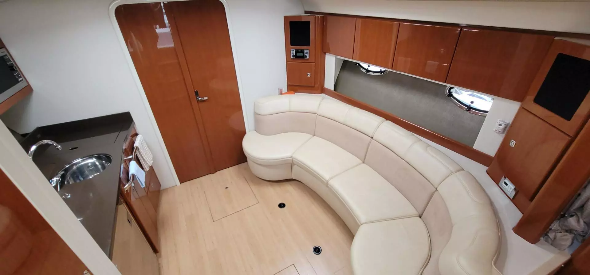 - Ultraleather aft cabin lounge/double berth, filler cushion & privacy enclosure