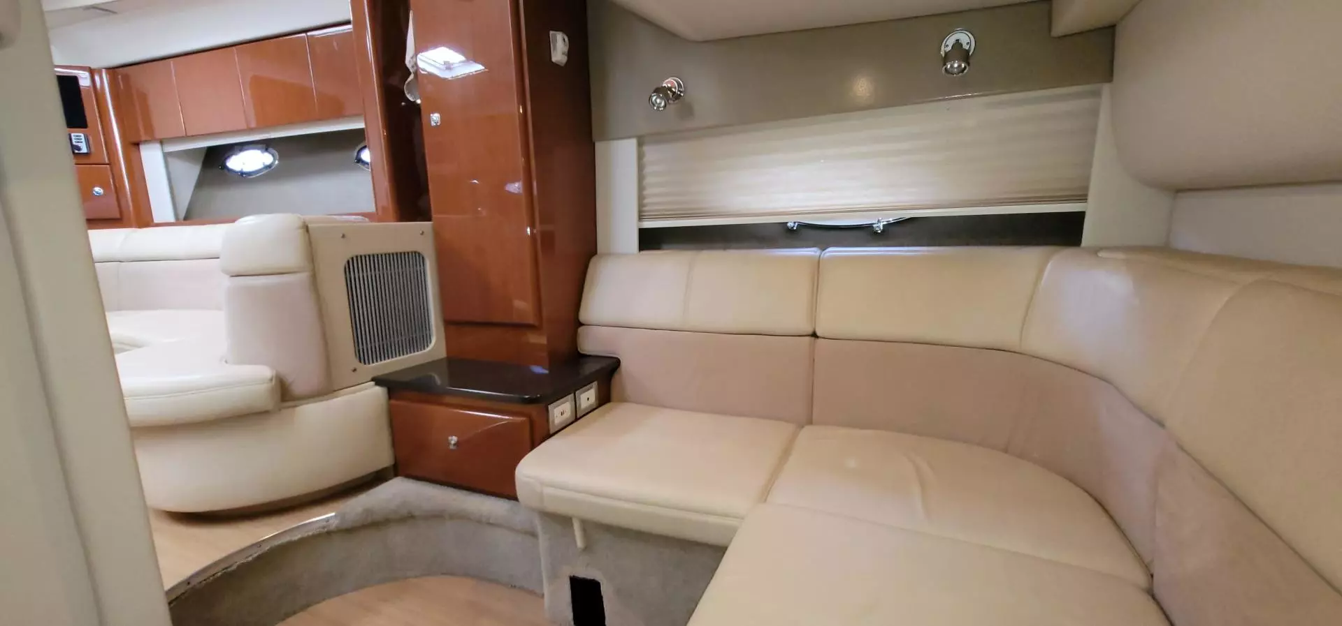- Three forward polished Bomar® cabin venting hatches w/integrated OceanAir® rollout SKYscreens & privacy shades