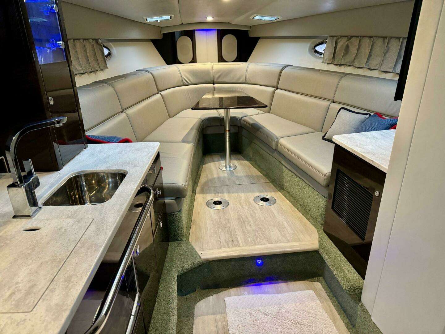 - Aft-facing sun lounge package w/storage below for tables, cushions & four fenders-converts to full-length sunpad