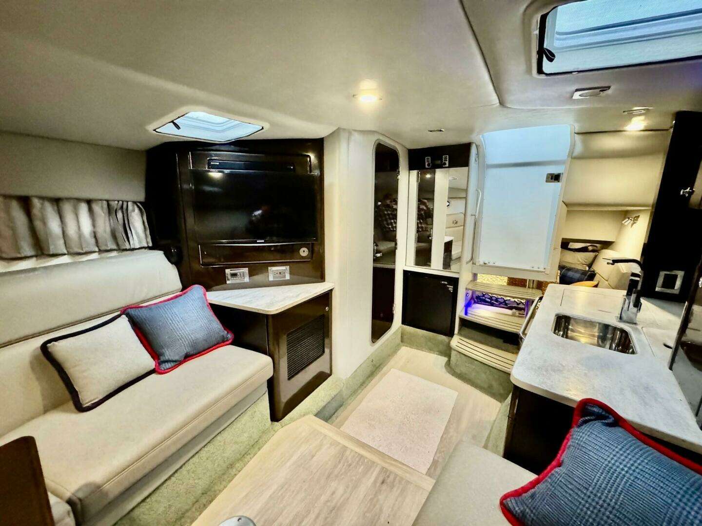 - Aft cabin stateroom/queen-size berth w/Sensus® memory foam mattress, full-width storage, cable TV receptacle, phone jack & 120V outlets
