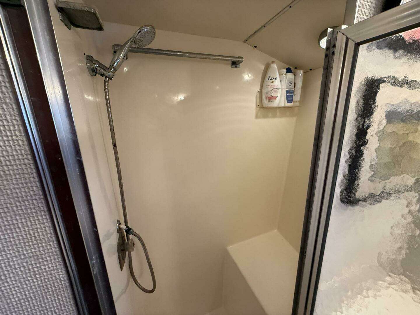 - Head with marine toilet, vanity, and separate stall shower (premium for this size)