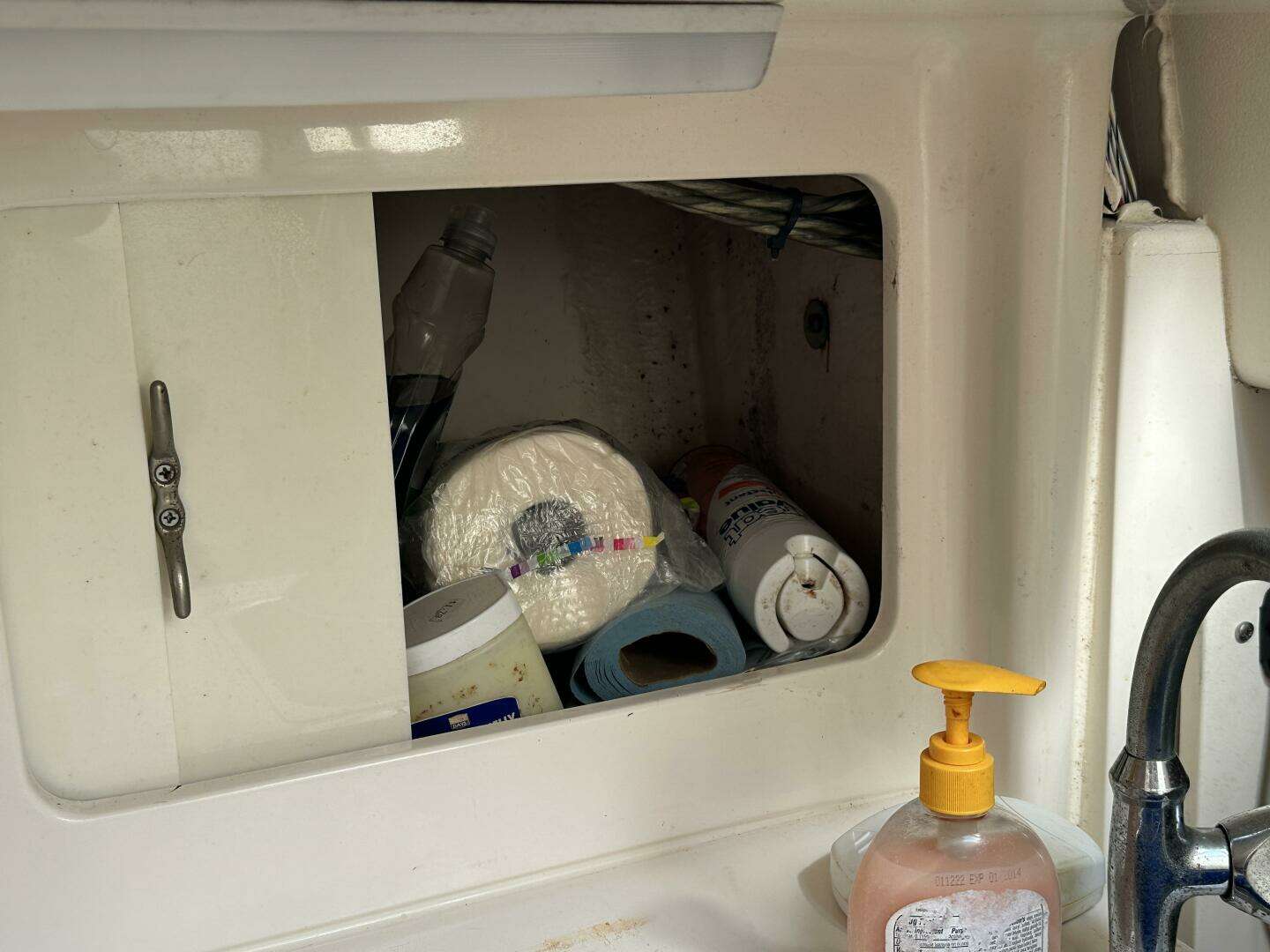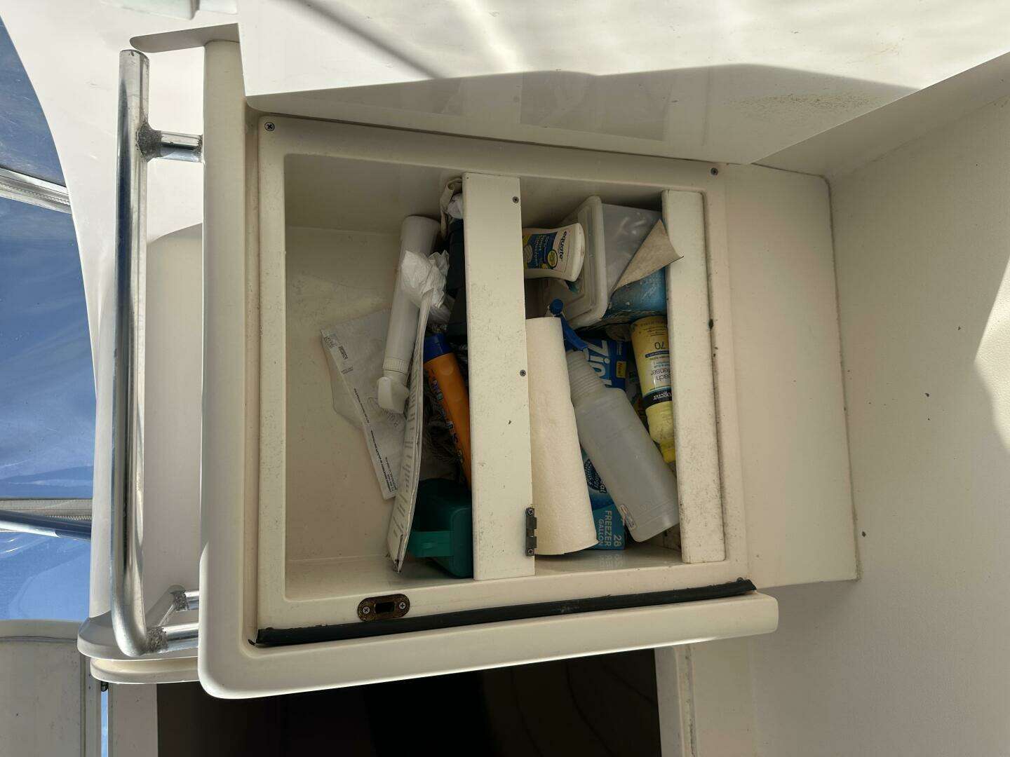 - The galley includes a breakfast bar and lots of storage as well as a new (2021) Vitrofrigo Stainless Steel refrigerator/freezer, a new (2021) Mauve convection, grill, microwave oven, and a