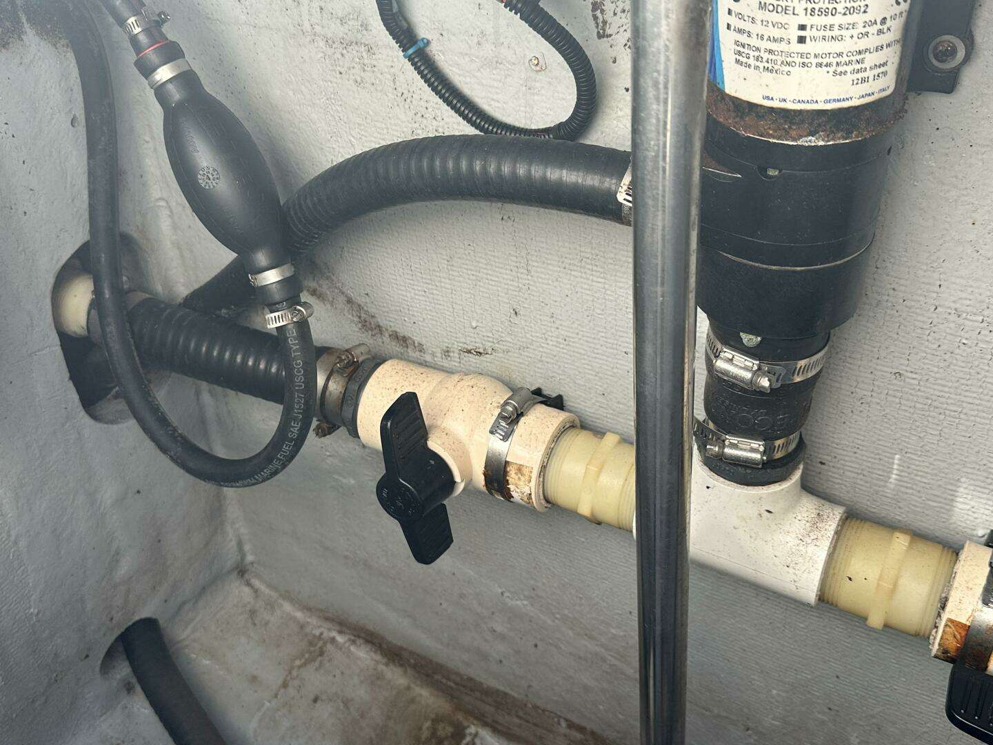 - The large head compartment features a large separate shower stall and a vacuflush commode.