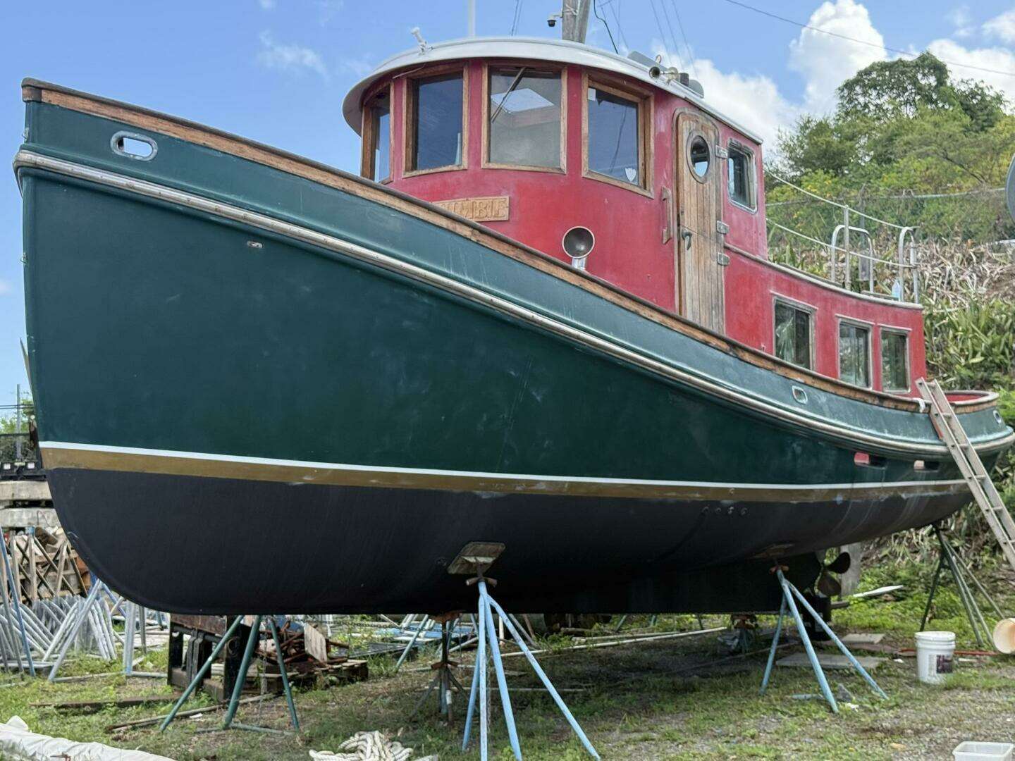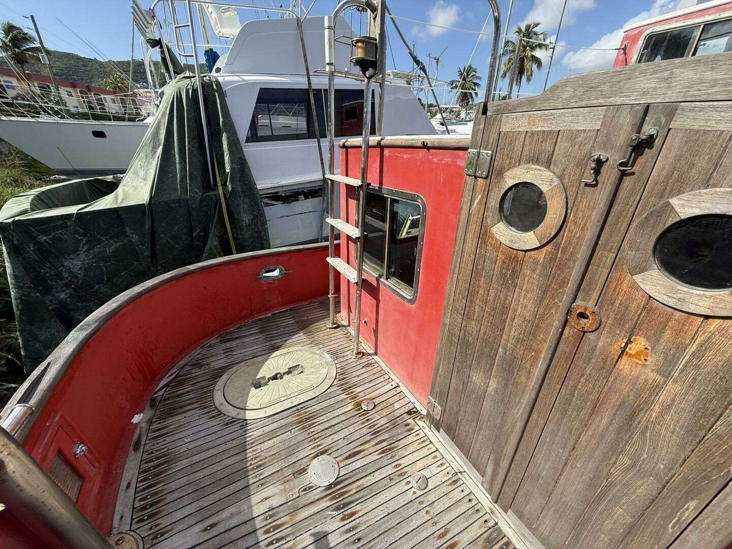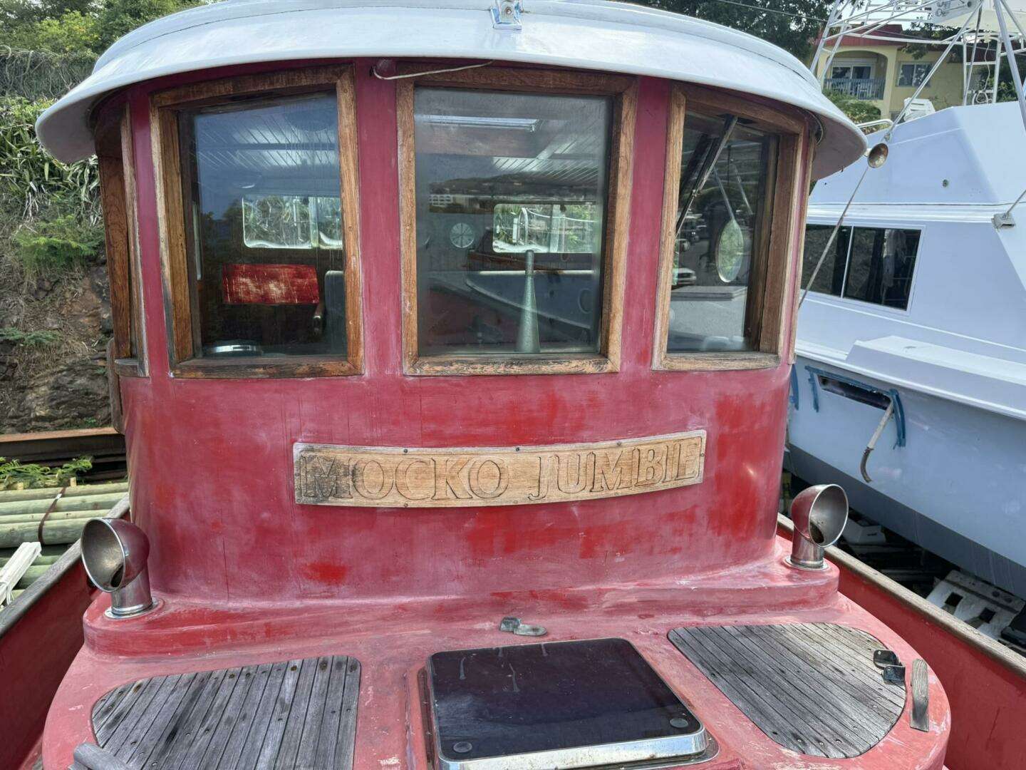 Mocko Jumbie is a rare 1986 Victory Tug 37 (Hull #49) designed by James Backus, featuring the iconic pilothouse, Portuguese bridge, and rich teak interior. Stored ashore in recent years and ready for TLC, she offers outstanding potential to become a true head-turning passagemaker once again.