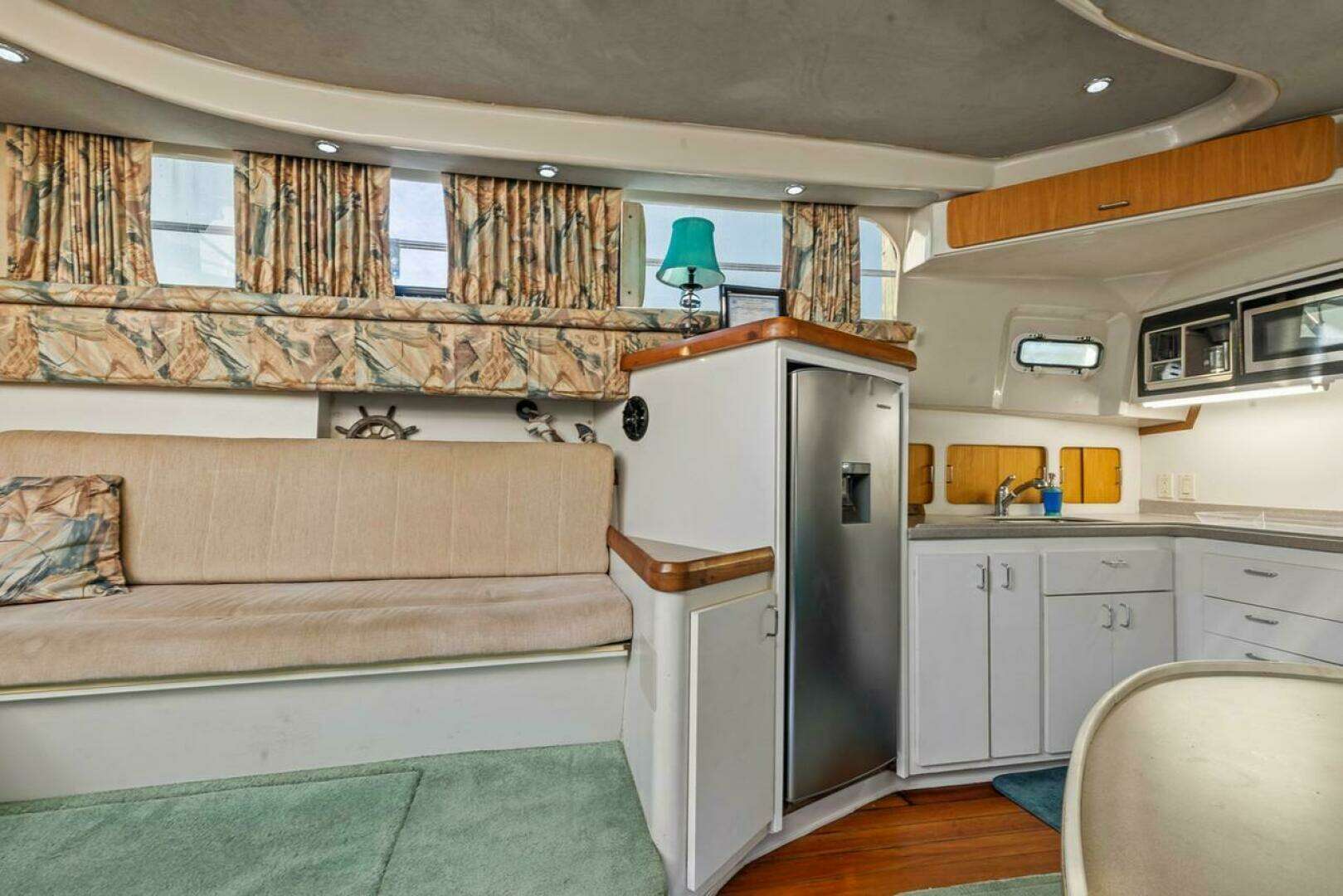 The Galley is very functional and is located to the port side one step down from the salon and directly accross from the dinette. It features all necessary appliances and a new refrigerator/freezer.
