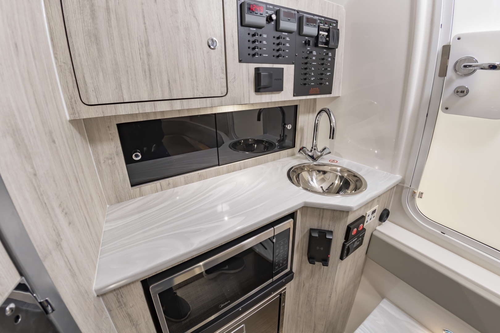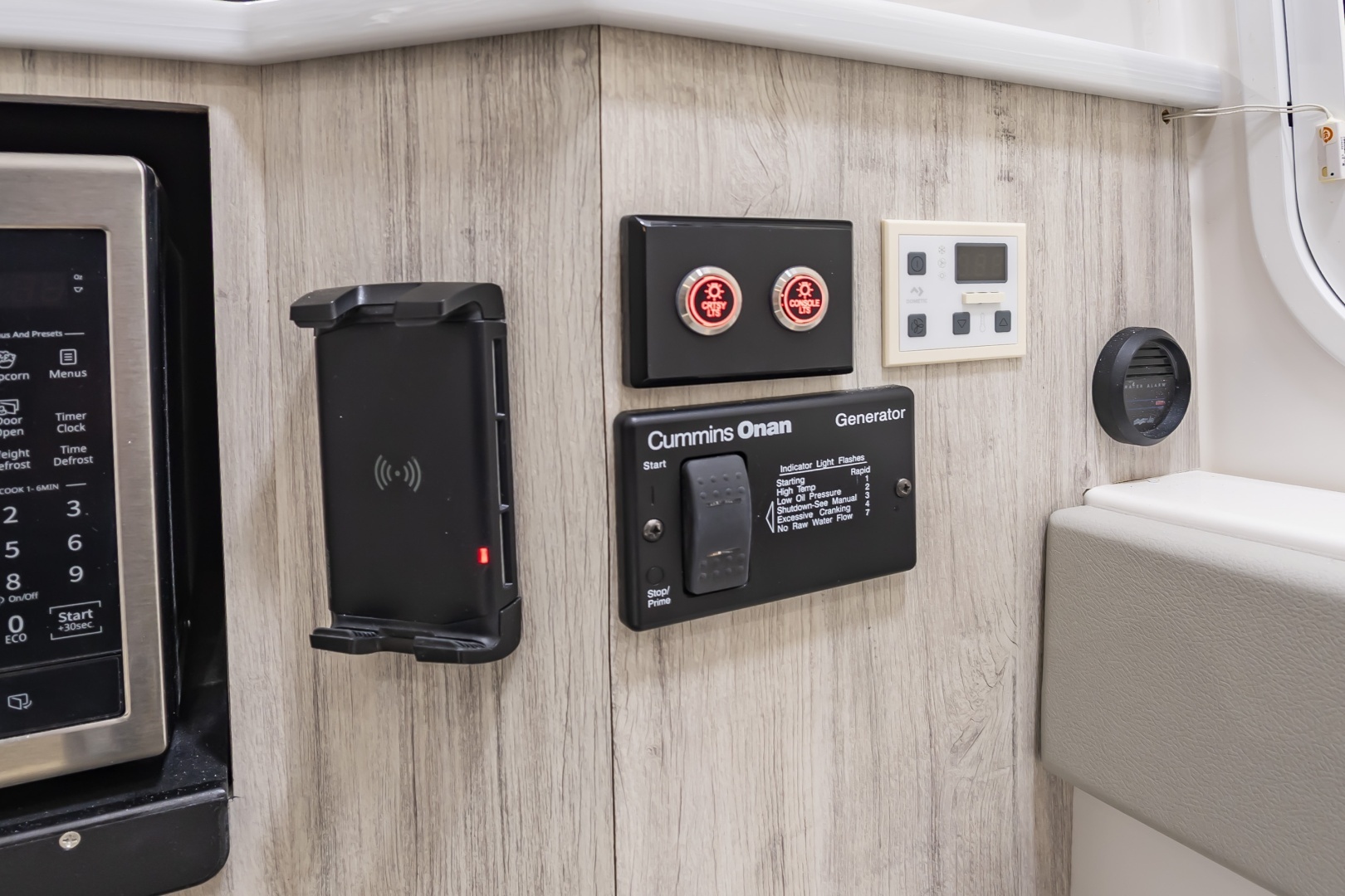 (2) Inductive cell phone chargers : (1) at Helm, (1) Inside Console