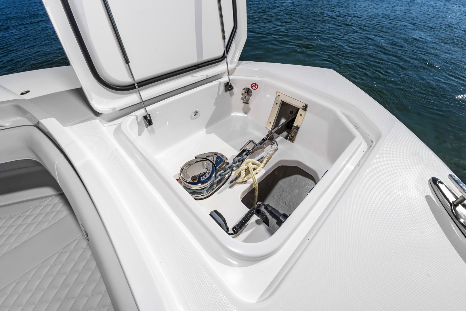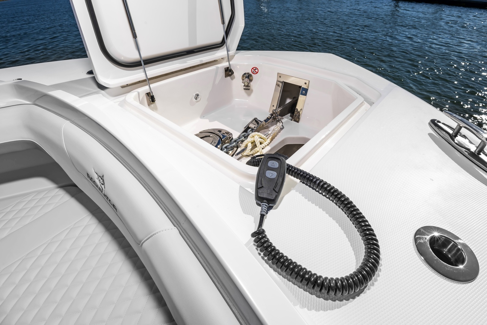 - Through Stem Bow Roller with Anchor Windlass in Forward Deck Anchor Locker, Freshwater Anchor Wash, Remote Switch, Chain, Chain Stop, Anchor, Freshwater Wash Down and Overboard Drain