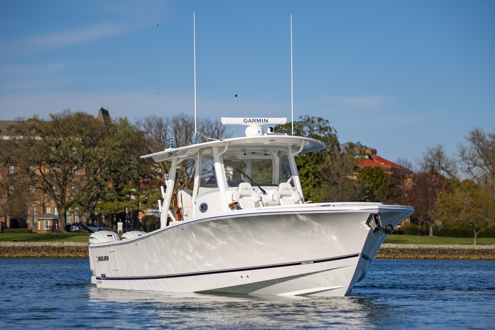 - Offshore Command Center: Garmin® Multi-Function Displays with Digital Switching and Monitoring, Plus Proprietary Regulator MyHelm™ Interface for Seamless and Intuitive Connectivity of Key Functions via Touchscreen