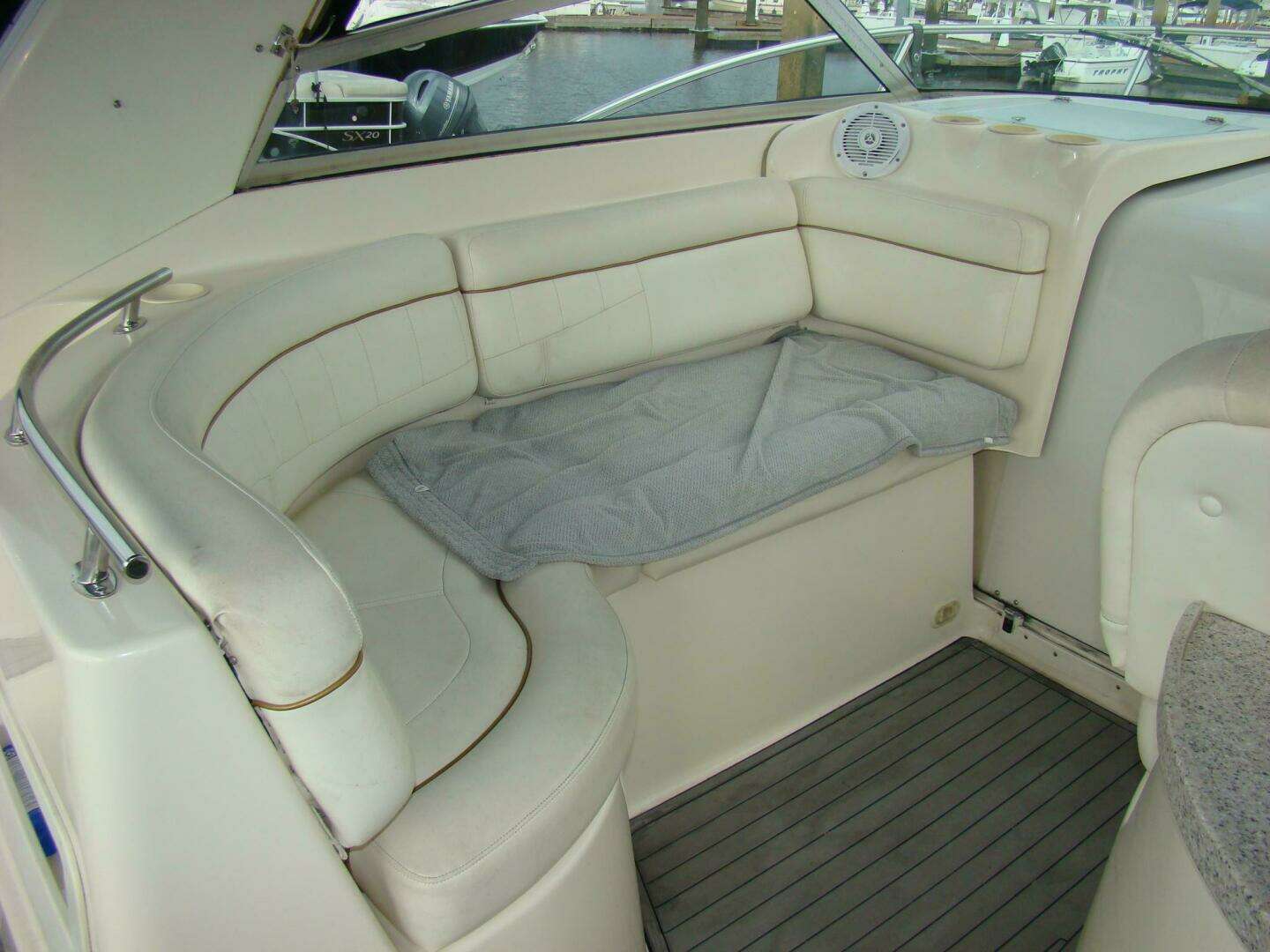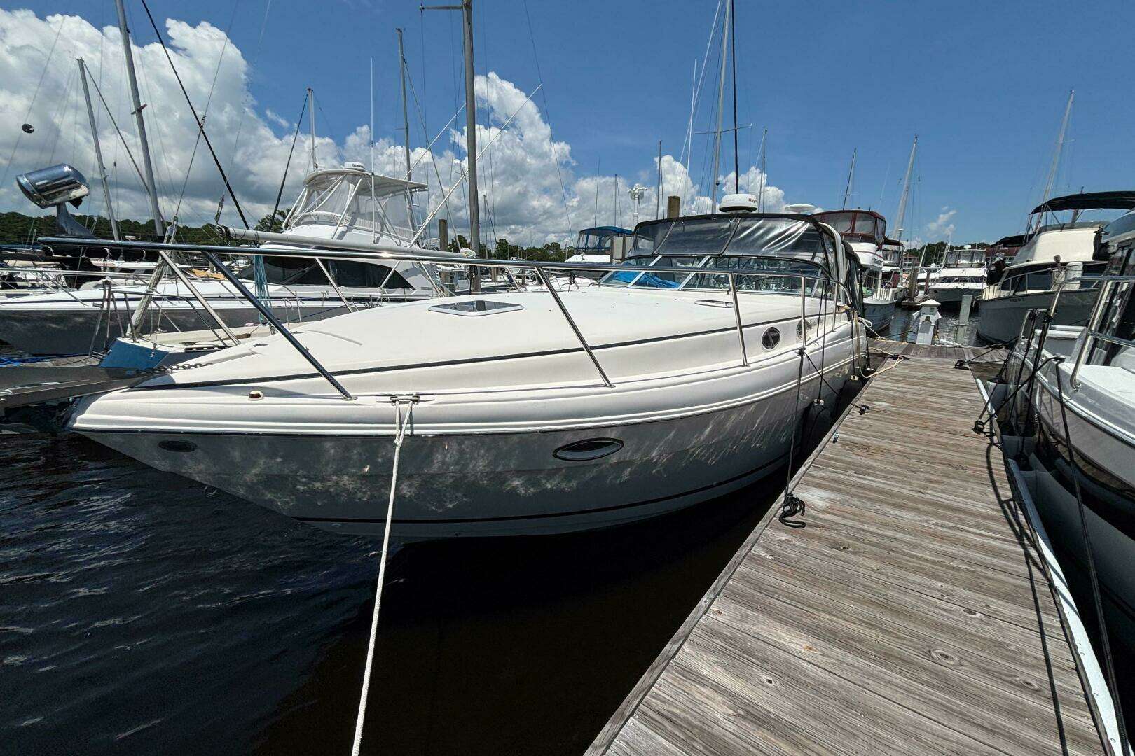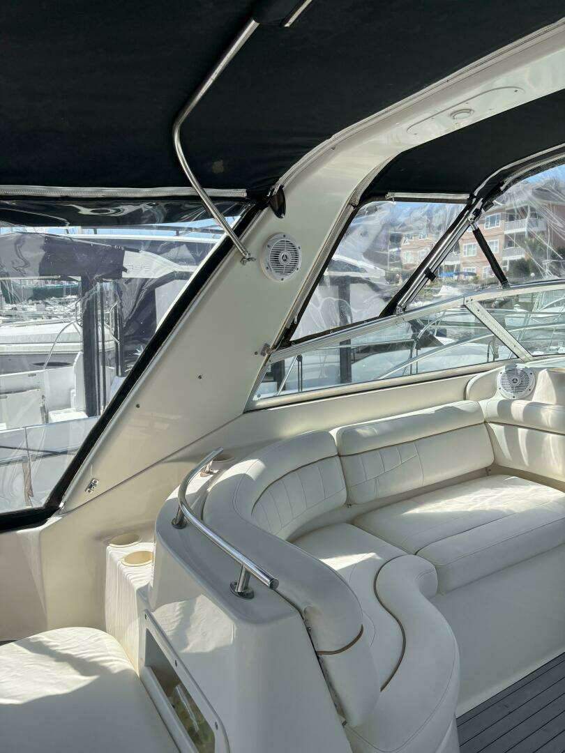 This 2002 Rinker 342 Fiesta Vee is a great mid size family cruiser where you can spend the day with family or do some overnight cruising. Plenty of room for a fun time. If you are looking for a lot of cabin and cockpit space on a 34 foot boat, this is it ! The Rinker 342 Fiesta Vee is a 37-foot express cruiser known for its comfortable accommodations, spacious interior, and stylish design. She also has updated electronics and Sea Deck Decking in the cockpit and on the swim platform, along with a new cockpit refrigerator. She also has a new starboard engine, new batteries, new electric flush head, both engines & generator serviced, and new outdrives. She's ready to go.