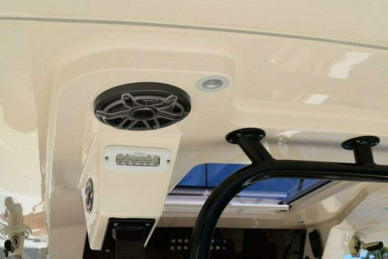 - Cutting-Edge Technology: As part of Scout's top-tier S-Class, it includes premium electronics (multiple large Garmin displays), Joystick Steering for easy docking, and electric-actuated amenities like the cockpit sunshade and forward dinette table.