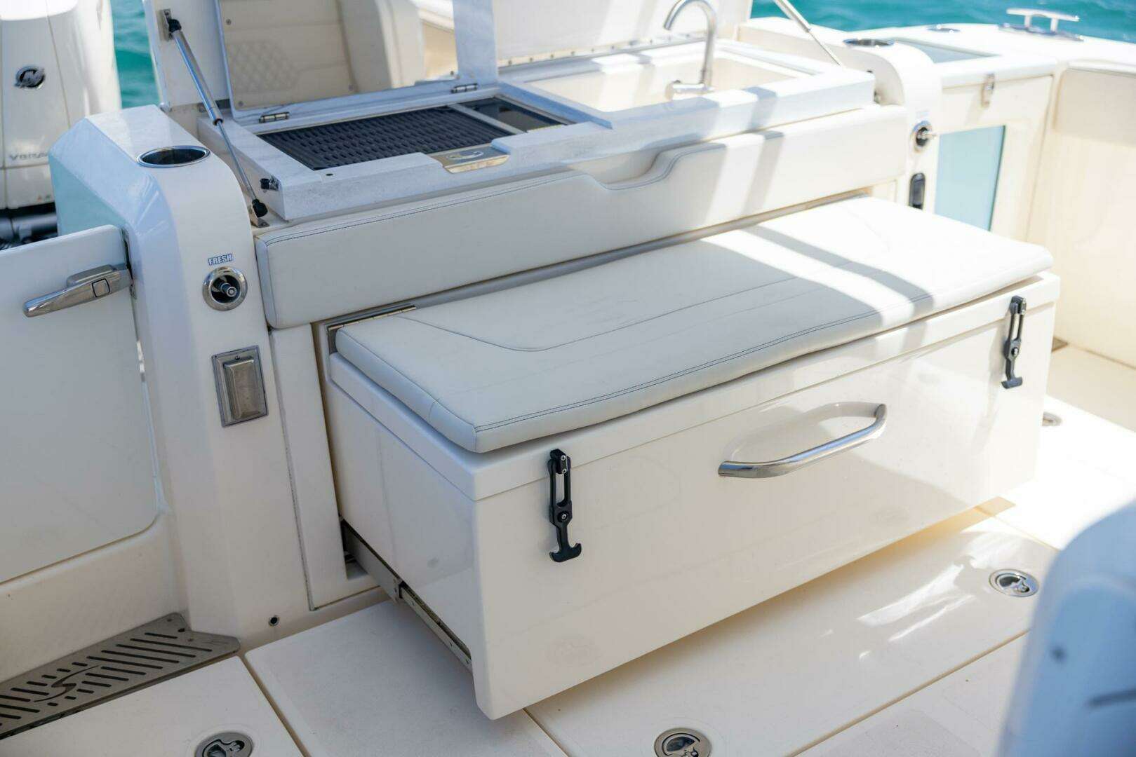 - Summer Kitchen (Grill, Sink, Cutting Board w Manual Slide-out Cooler, Sea Cushion and Bolster