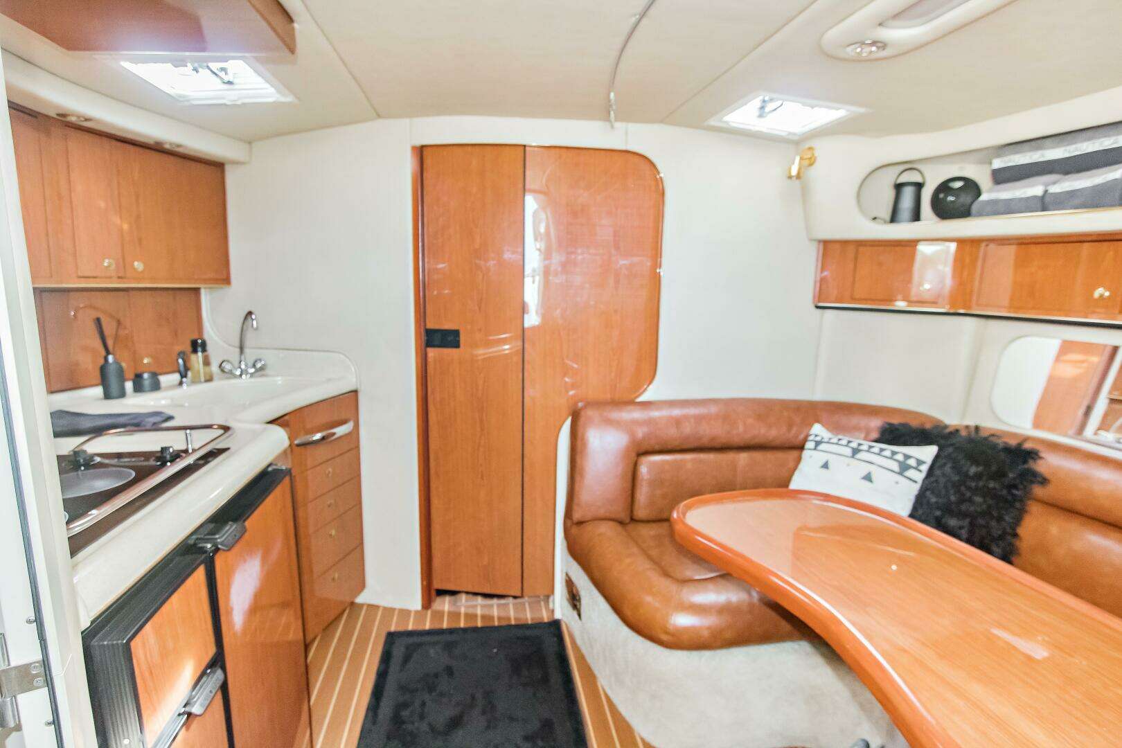 - Salon Features a large U-shaped settee/dinette that converts to sleeps (2)