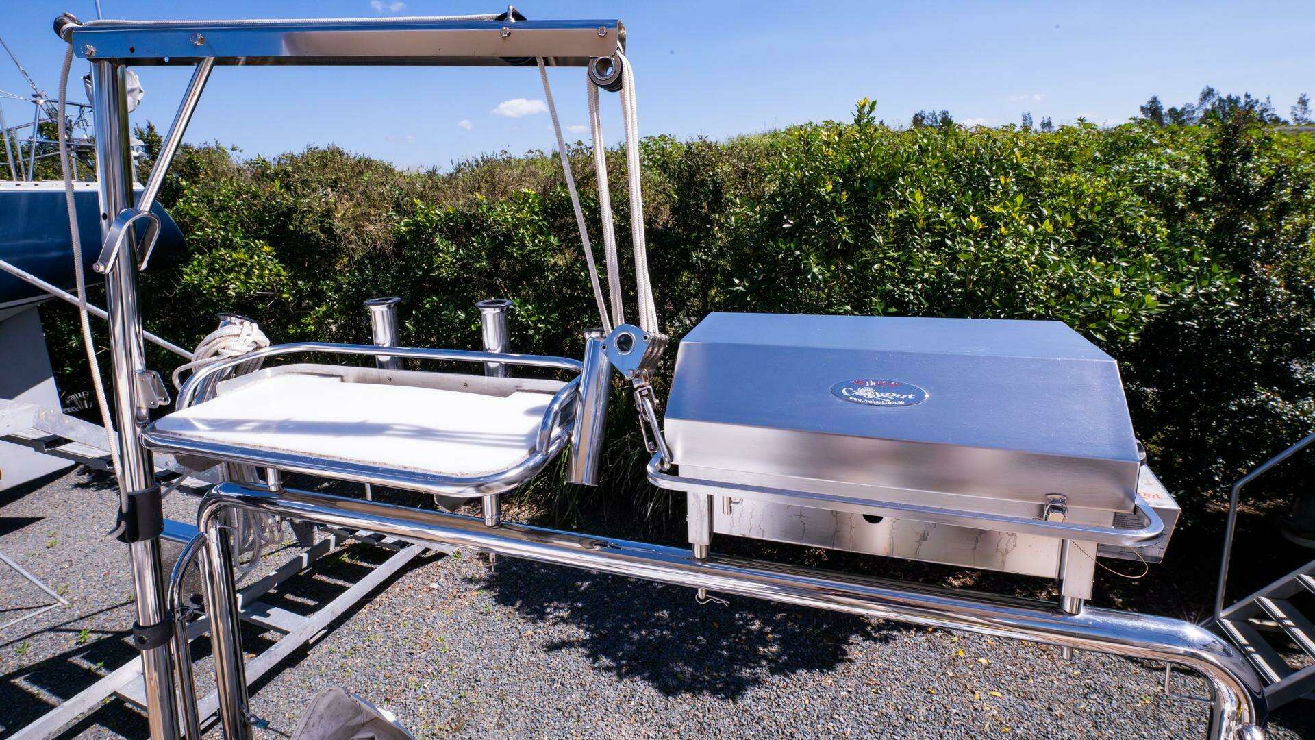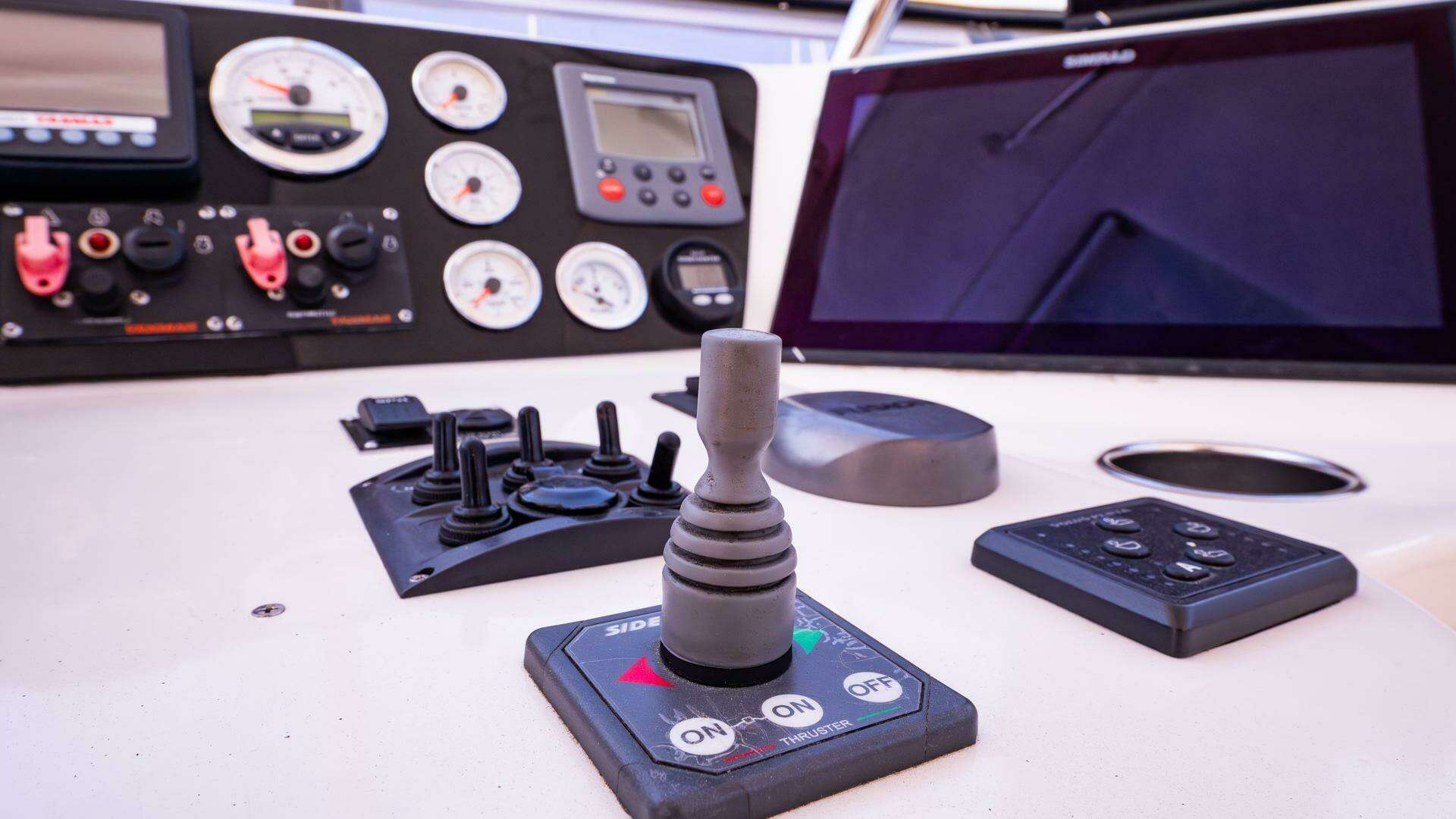 The spacious cockpit is ideal for entertaining, with a BBQ, deck shower, bimini and full enclosures. Navigation and entertainment systems include Simrad NSS16 MFD, autopilot, radar, AIS, GPS, VHF, Fusion stereo and smart TV.
