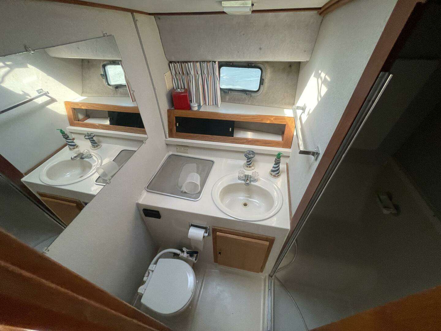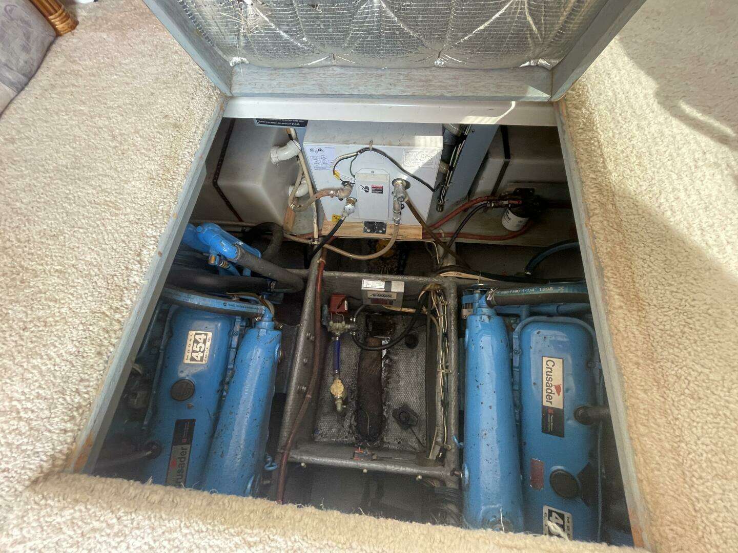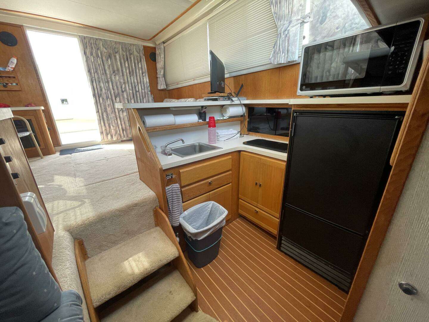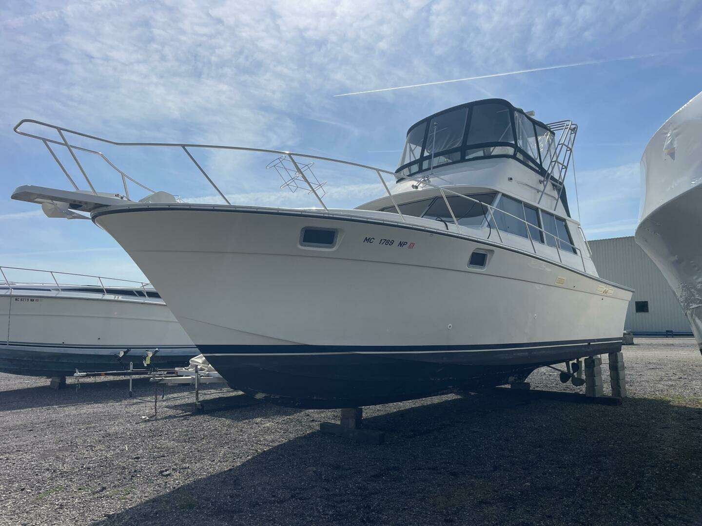 BROKER NOTES: Lifetime Fresh Water Boat! Exterior shows in good condition. Cabin shows in excellent condition. New rear flybridge isinglass 2023. New port side Transmission (2024) Full mechanical tune ups (5/2023) (cap, wires, rotor, plugs, fuel filters). New Generator Battery (5/2023)