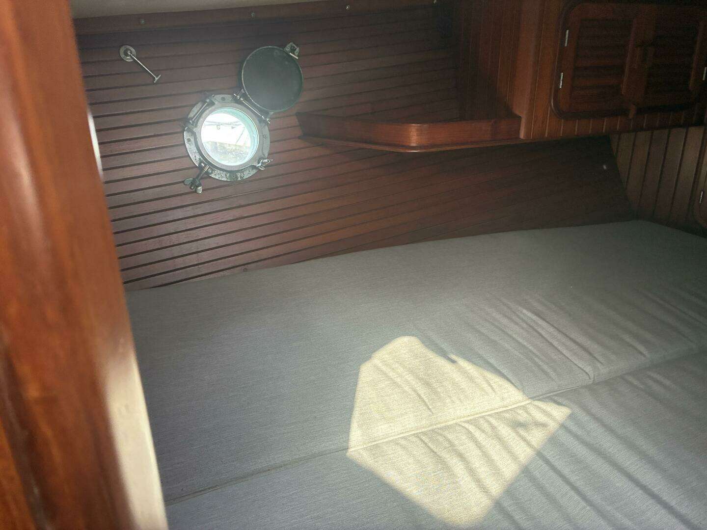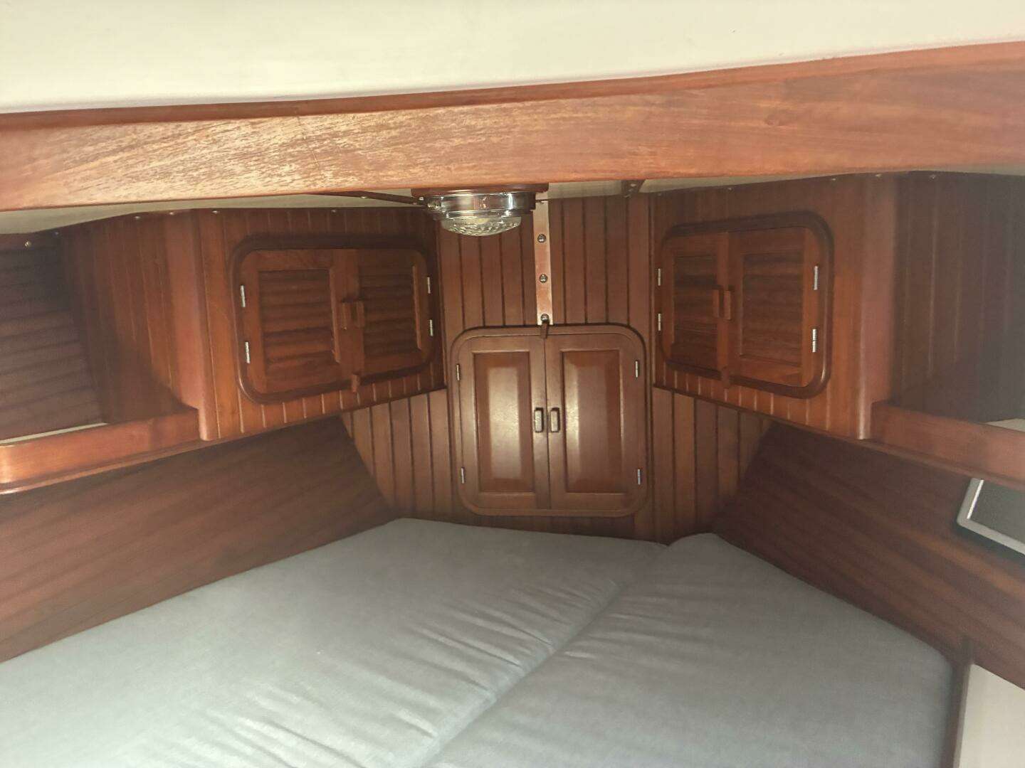 Although designed with serious passagemaking in mind, the Slocum 37 was never intended to be a purely utilitarian offshore machine. Instead, she balances bluewater capability with cruising comfort, making her equally suitable for relaxed coastal sailing or a quiet weekend cruise. The sail plan incorporates modern sheet winches, slab reefing, and a boomed staysail, allowing the vessel to be handled confidently by a short-handed crew. All primary sail controls and sheet winches are arranged for efficient operation from the cockpit.