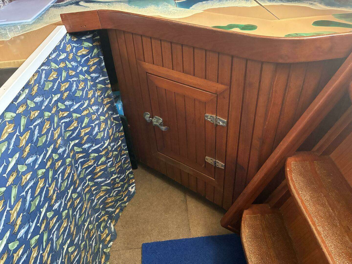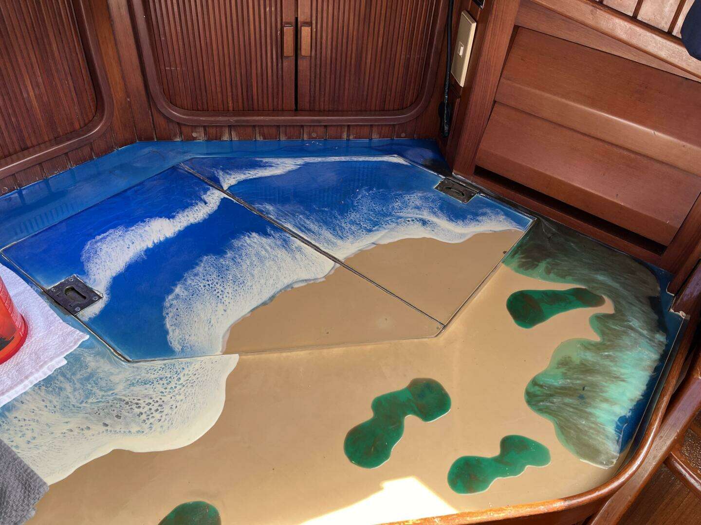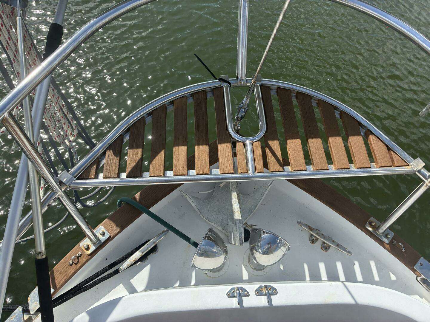- Teak: Cockpit sole, cockpit seats, rub rail, cap rail, and stern seat
