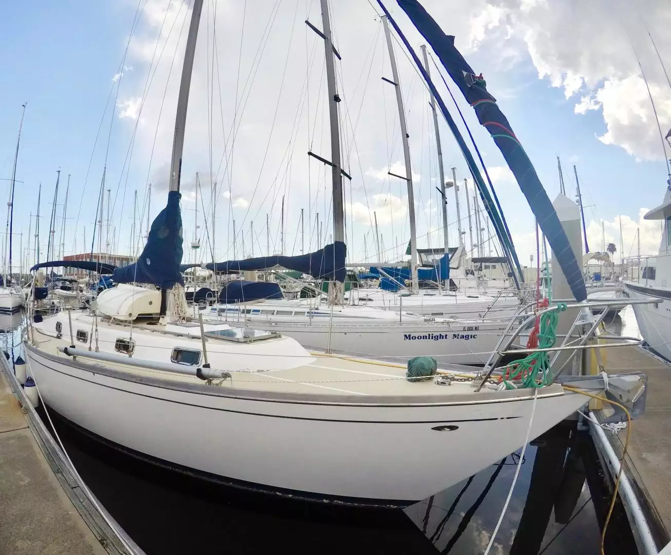 This seaworthy vessel has only had 2 owners during its lifetime. Her current owners have cared well for her and equipped her with all the necessaries to withstand long trips at sea. With 7 different sails and a deep keel, this is a truly a blue water boat that will take you places!