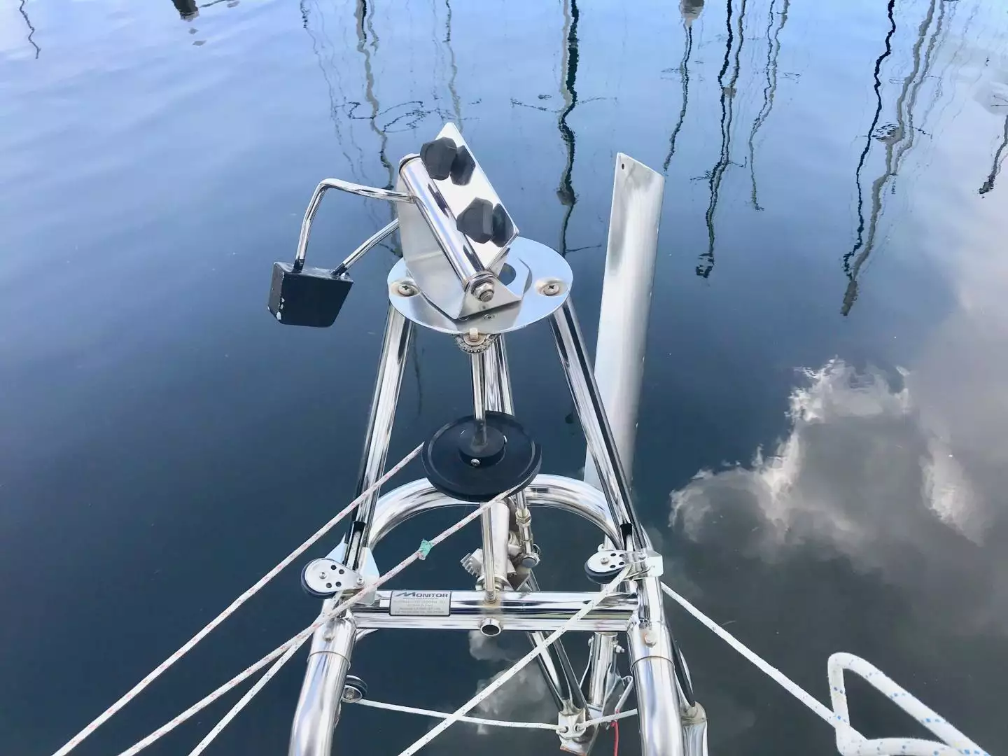 A Monitor Windvane to keep a steady course in heavy weather without draining your batteries, Solar Panels to keep the latter full, enough anchors and chains for proper mooring, this Tartan 37 is a sturdy, robust, reliable and well equipped vessel to sail larger bodies of water.