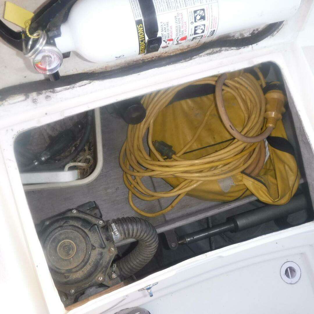 Macerator Pump – Jabsco Self-Priming Pump New Pump – (2025) Operation switch under step at bottom of port V-berthlocker. Pump located under base of port Vee berth locker