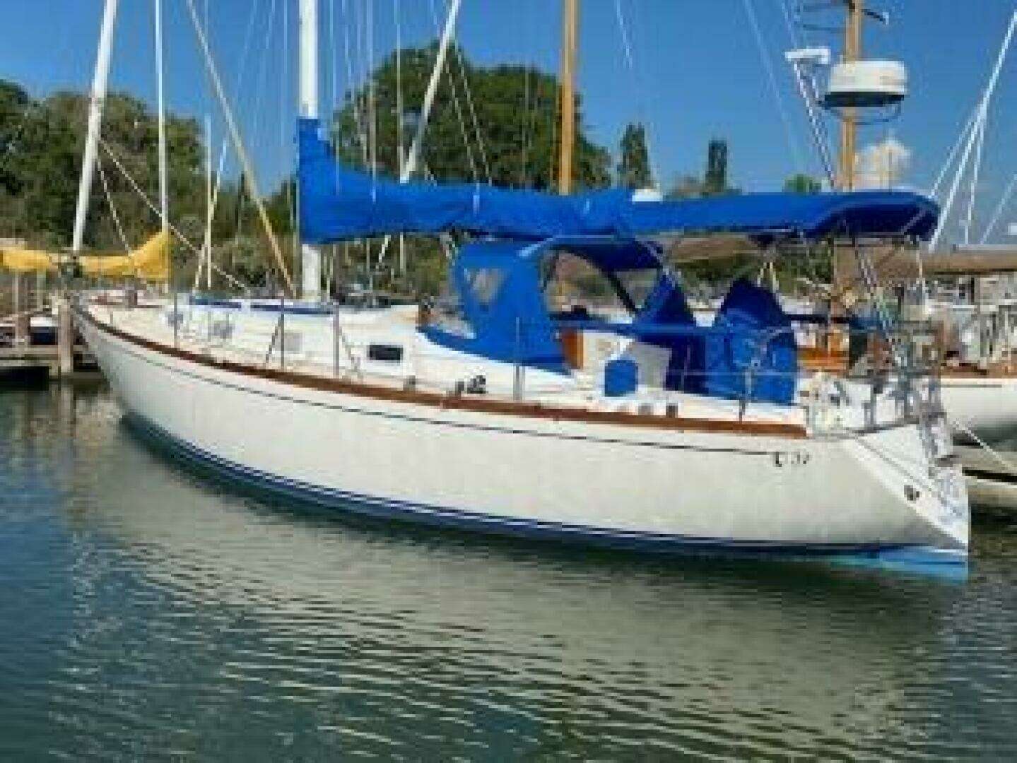 There were 486 Tartan 37's built, and Tryst is the last one off the production line before they made modifications and came out with other models. As the last boat, it had some changes that are not common in most Tartan 37's. The interior is different. Tartan was able to use the newer Tartan 40 designed cabinetry. The owners have dual propane lockers in the cockpit for a new 4 burner PROPANE stove and oven. The interior upholstery is NOT the traditional dark, tartan, scratchy, plaid cushions. On the outside, Tryst has the double spreader tall mast with a bridge clearance around 53' 8"above and the Scheel Keel draws 4' 7" underneath. More importantly, the current (original) owners of the boat have taken meticulous care of the boat, sails, rigging, and engine. All owners manuals and major records will convey with the boat. There is a full winter cover for winter storage. The removable teak gets treated every year over the winter and is in excellent condition (the toe rail and grab rails have been routinely varnished by the boat yard). The Man-overboard bag on port is replicated with a similar bag holding life jackets, because they make good back rests while sailing. There's a custom-made screen bag for storing the companionway screen system. Sleeping has been enhanced with a real custom Handcraft Inner Spring Mattress fitted in the vee berth and is as comfortable as your bed at home. There's a storage bag in the cockpit locker with designated "RAFTING LINES" for proper safe rafting with other boats. There's a very compact group of pots and pans are stored together with removable handles in an area about 1' X 1' X 1'. Lots of little things that make "Tryst" the best choice for a used Tartan 37.
