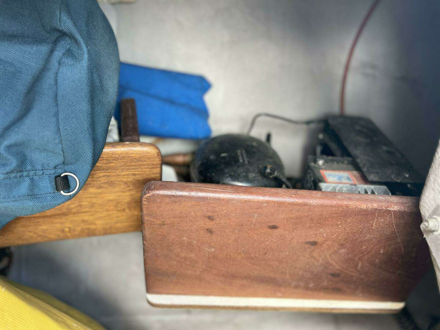 13. Plywood hatch boards for use during winter storage (I took the teak hatch boards home over the winter to restore and revarnish them. I also took home the detachable teak – cockpit teak – home for winter revarnishing)