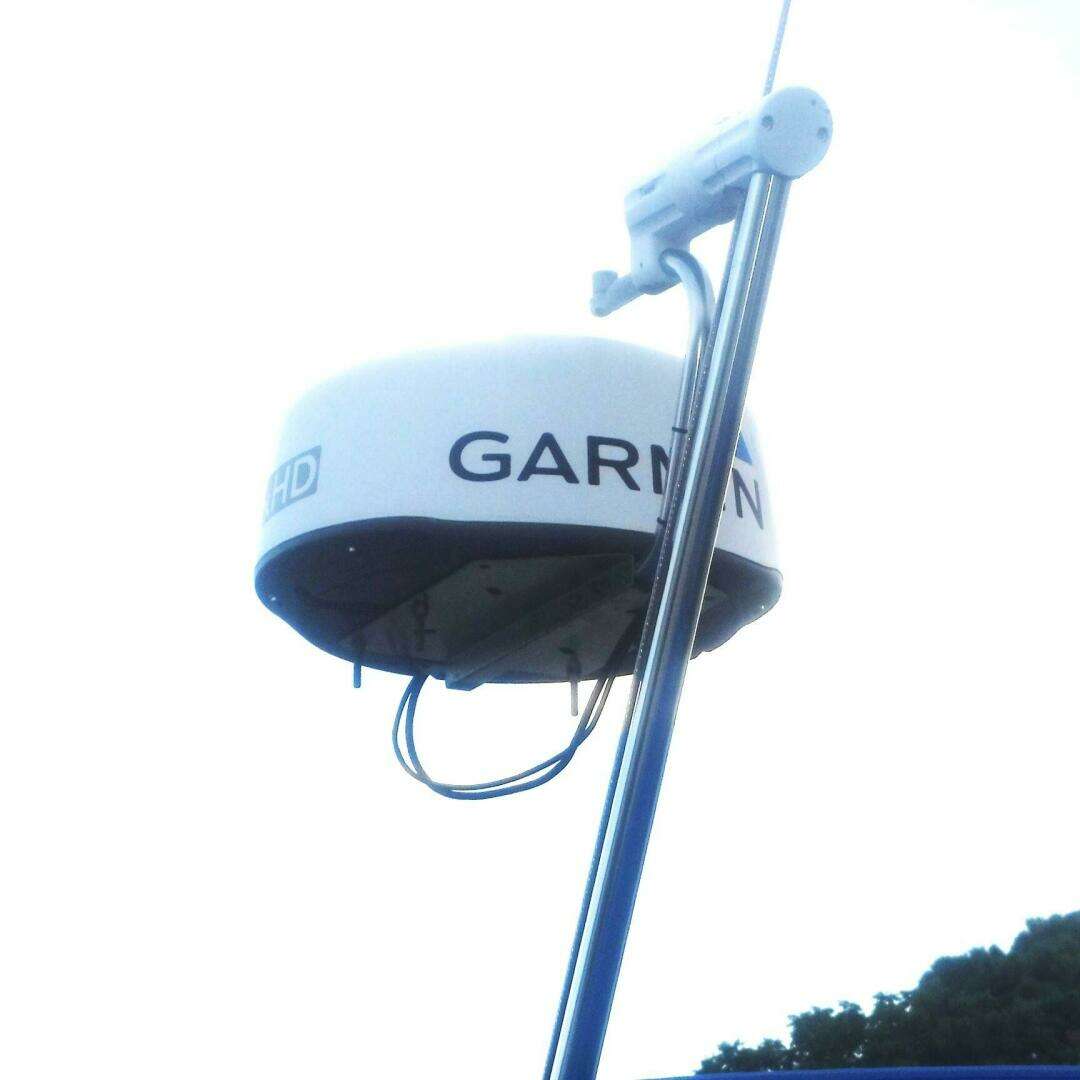 Garmin HD Radar mounted on Questus 400-G self-leveling station on backstay