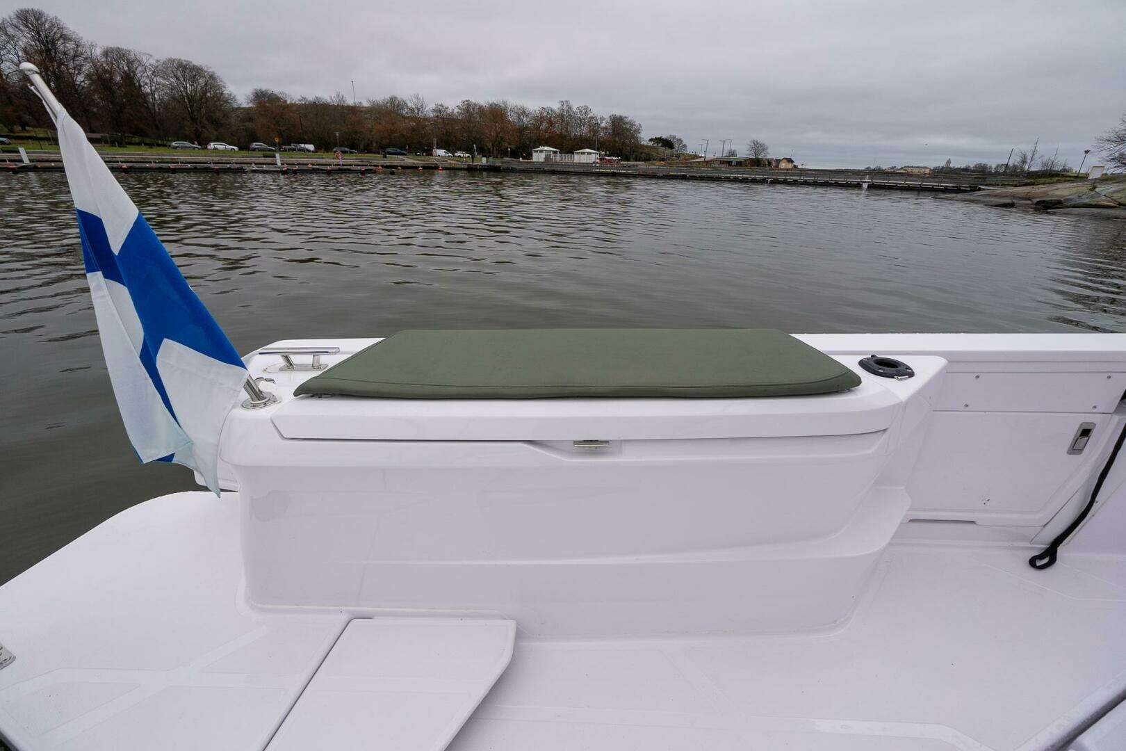 The cockpit layout highlights Axopar’s modular design approach. This example specification includes activity platforms and two fenderbox bench seats, providing additional seating, storage, and functionality for time on the water. The activity platforms extend the usable deck space and make boarding, swimming, and watersports more convenient.