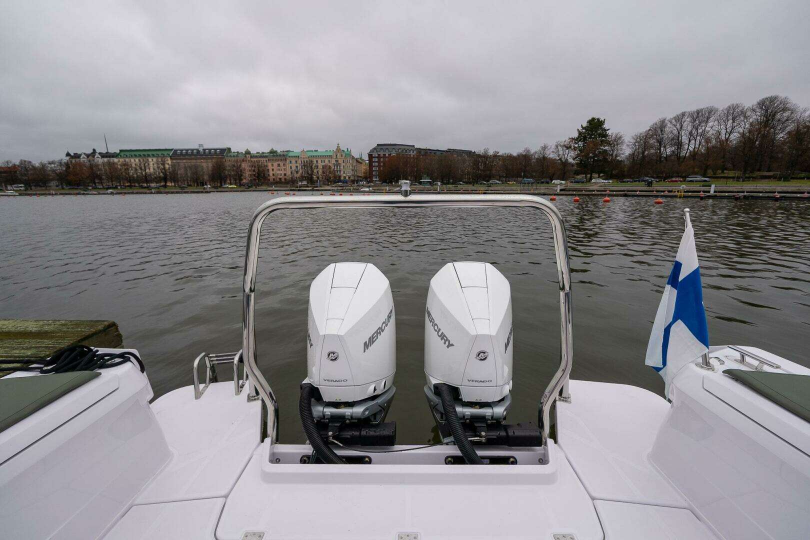 Powered by twin white Mercury Verado V10 350 hp engines and equipped with the BRABUS Performance Line package, this configuration delivers strong performance, refined styling, and the confident handling that defines the Axopar 38 hull. The platform balances speed, efficiency, and seakeeping, making it well suited for both day boating and longer coastal runs.