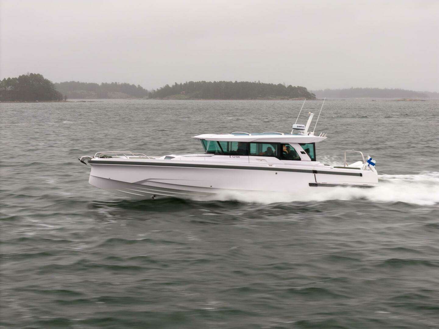 This Axopar 38 XC Cross Cabin is shown as a well-equipped build, highlighting one of the many ways the platform can be configured. Designed around versatility and all-weather usability, the 38 XC combines the protection of a fully enclosed pilothouse with the performance and modular deck layout Axopar is known for.