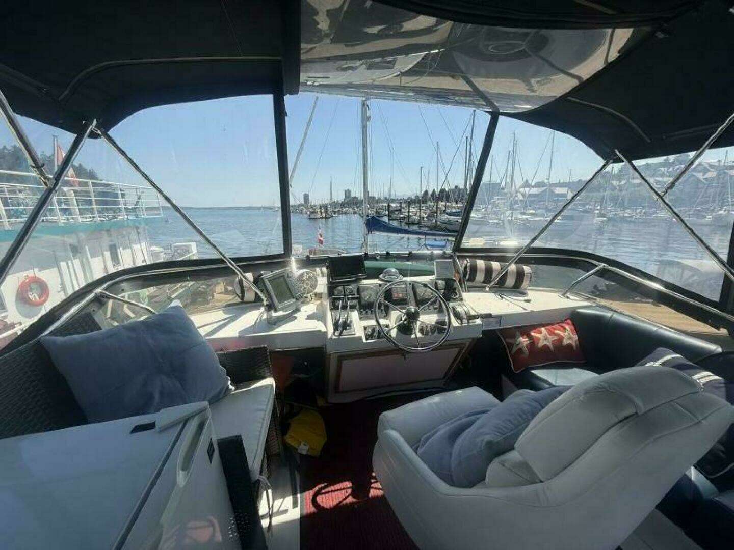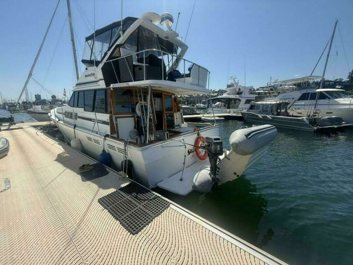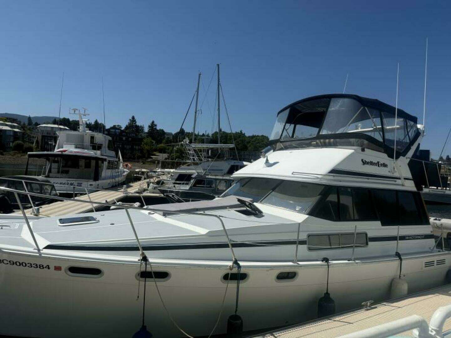 Shelter Belle is a beautifully appointed 1991 Bayliner 3888 Motor Yacht that blends comfort, performance, and proven Pacific Northwest cruising capability. Her semi-displacement hull, powered by twin 210 HP Hino turbo diesel engines, offers an efficient and stable ride perfect for exploring our region’s pristine waterways from the Gulf Islands to Desolation Sound and beyond.