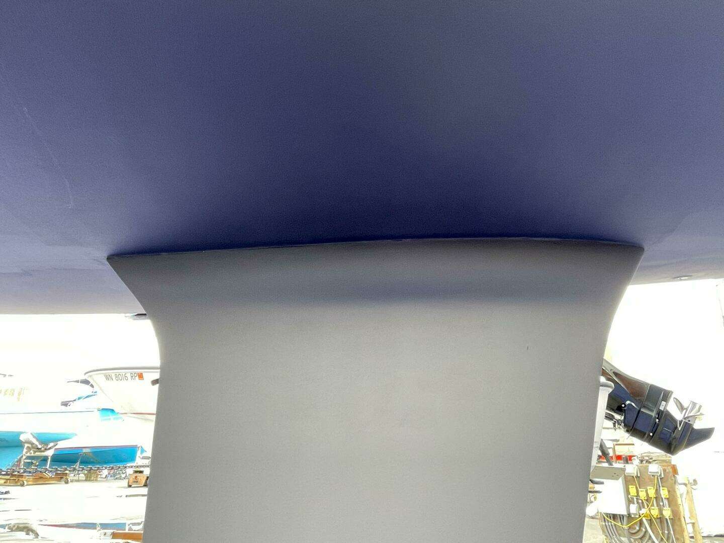 The interior layout features an L-shaped galley and a separate shower compartment, making the space well suited for extended stays aboard. Additional USB charging ports were installed during commissioning, and the full-surround Iverson Marine canvas enclosure provides excellent weather protection—particularly well suited to the variable conditions of Puget Sound and the Canadian Gulf Islands. The bottom and entire hull were repainted last summer, reflecting consistent and attentive maintenance.