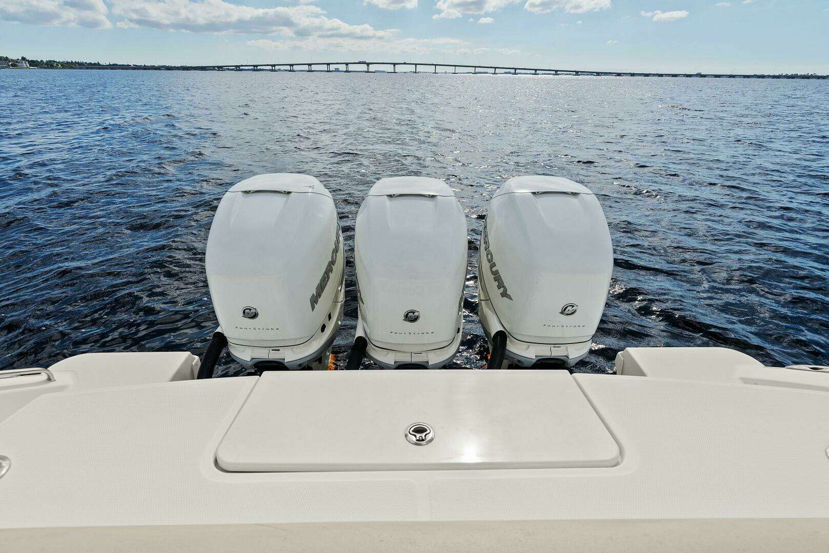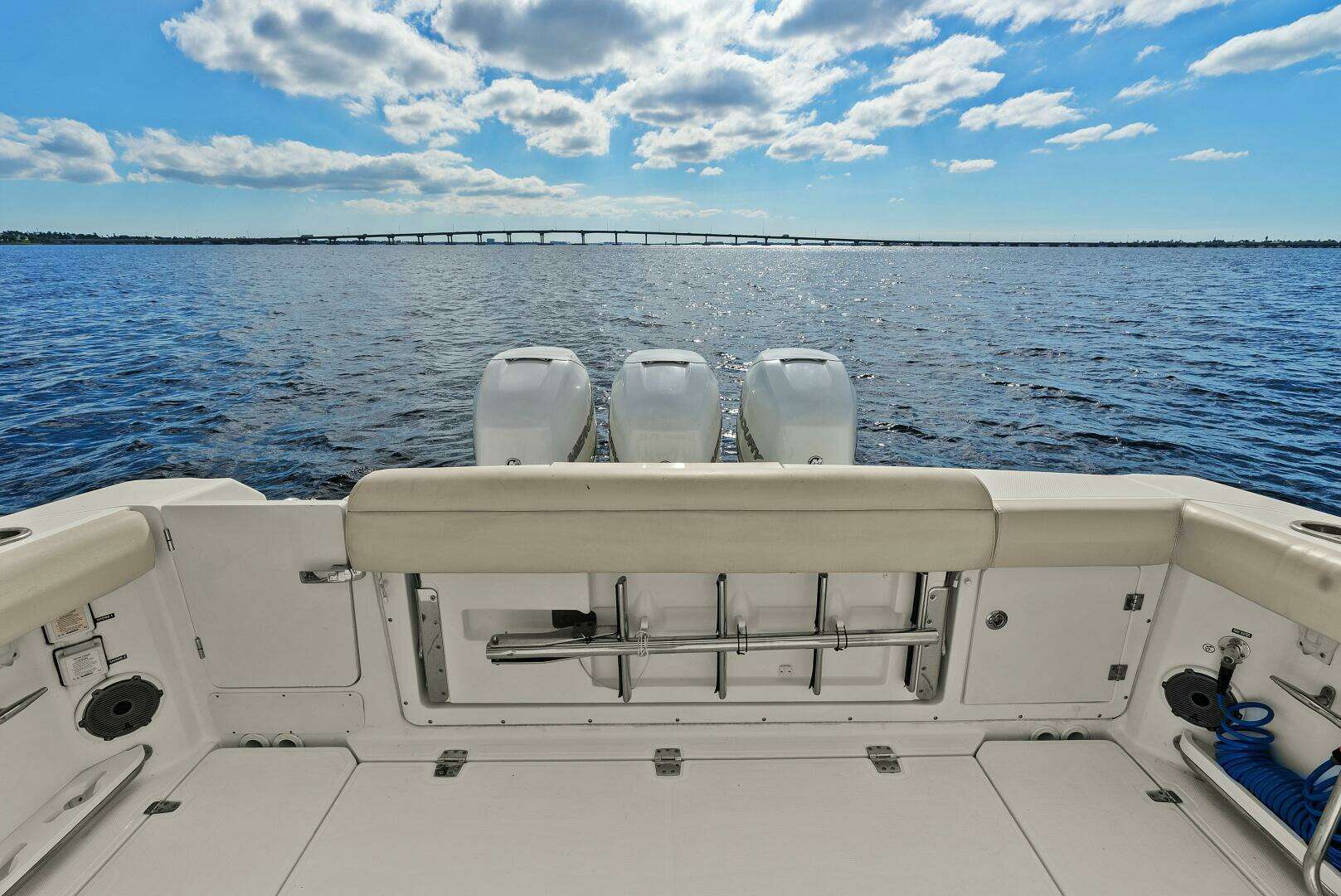 This 2019 Boston Whaler 380 Outrage "Lima Kilo" delivers the perfect combination of performance, luxury, and versatility—ready for any adventure on the water. Meticulously maintained and consistently serviced, this vessel shows just 505 hours on triple Mercury 350 Verado engines.