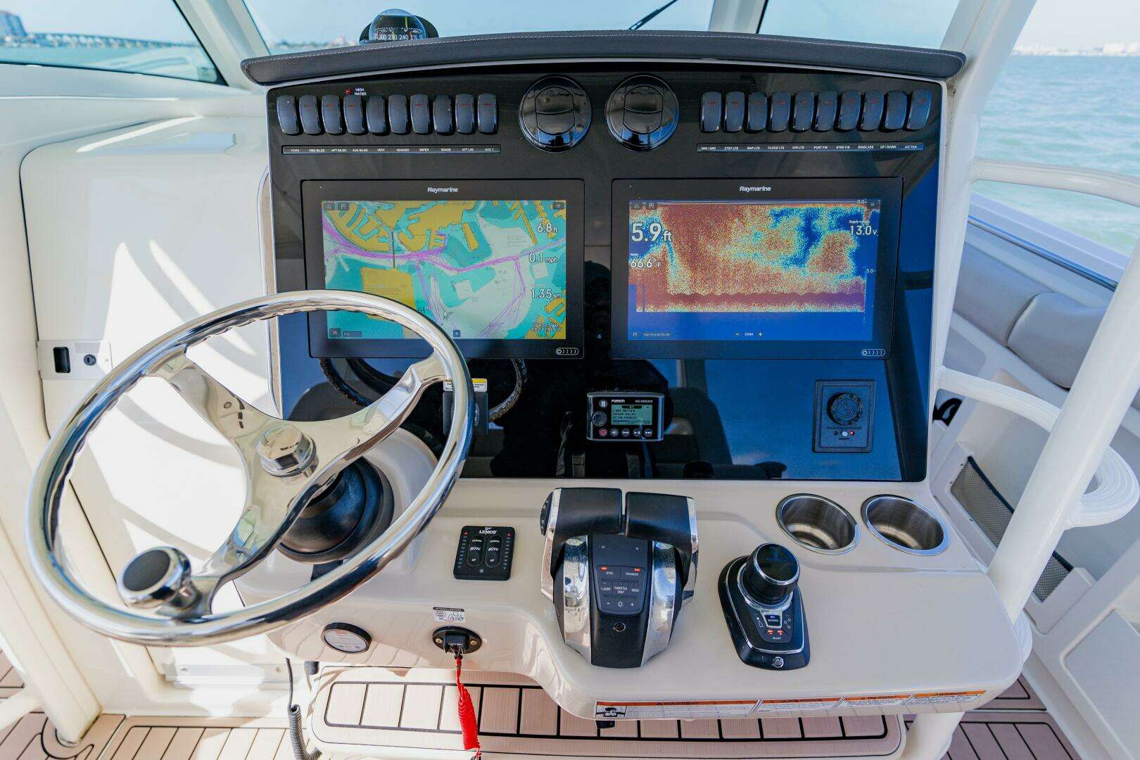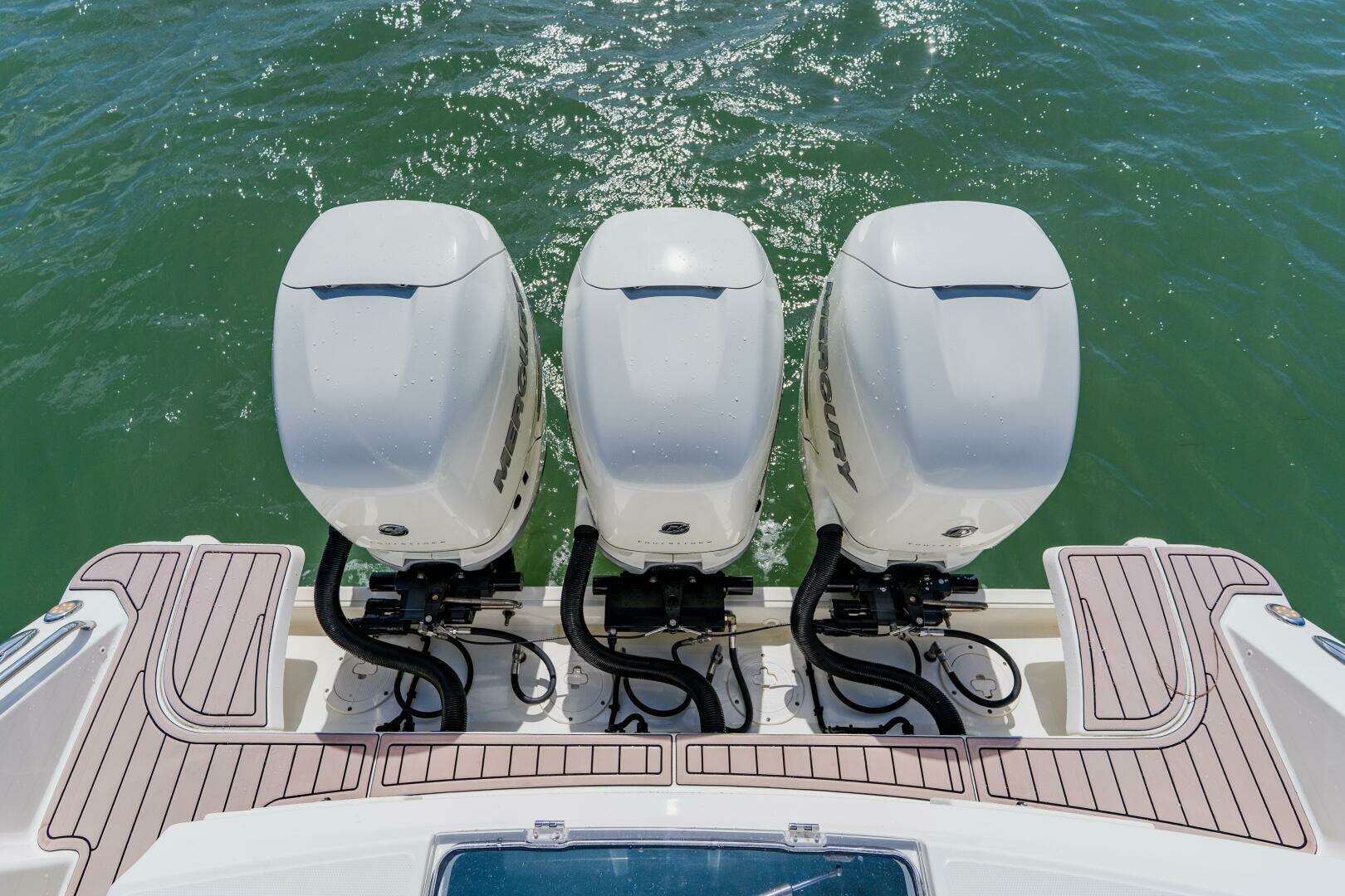 2019 Boston Whaler 380 Outrage “Spec-Tacular Li Li” powered by triple Mercury 400s with joystick and Skyhook. Equipped with Seakeeper, Fischer Panda generator, Raymarine electronics, JL Audio, and full climate control. Turnkey and located in St. Pete Beach, FL.