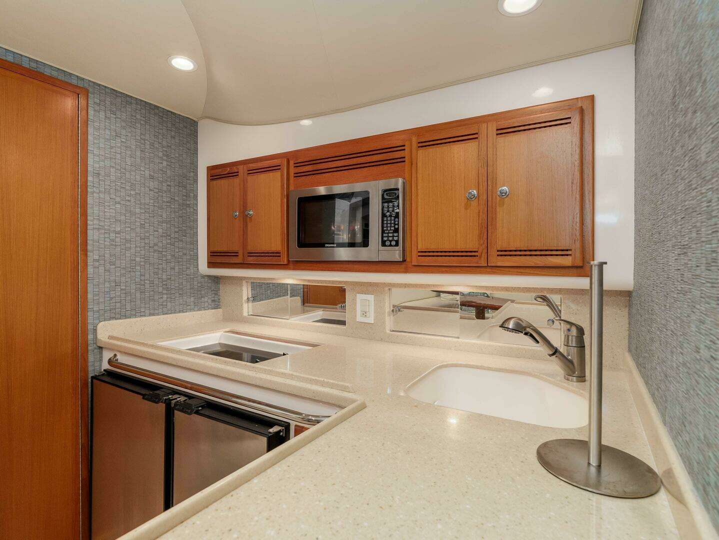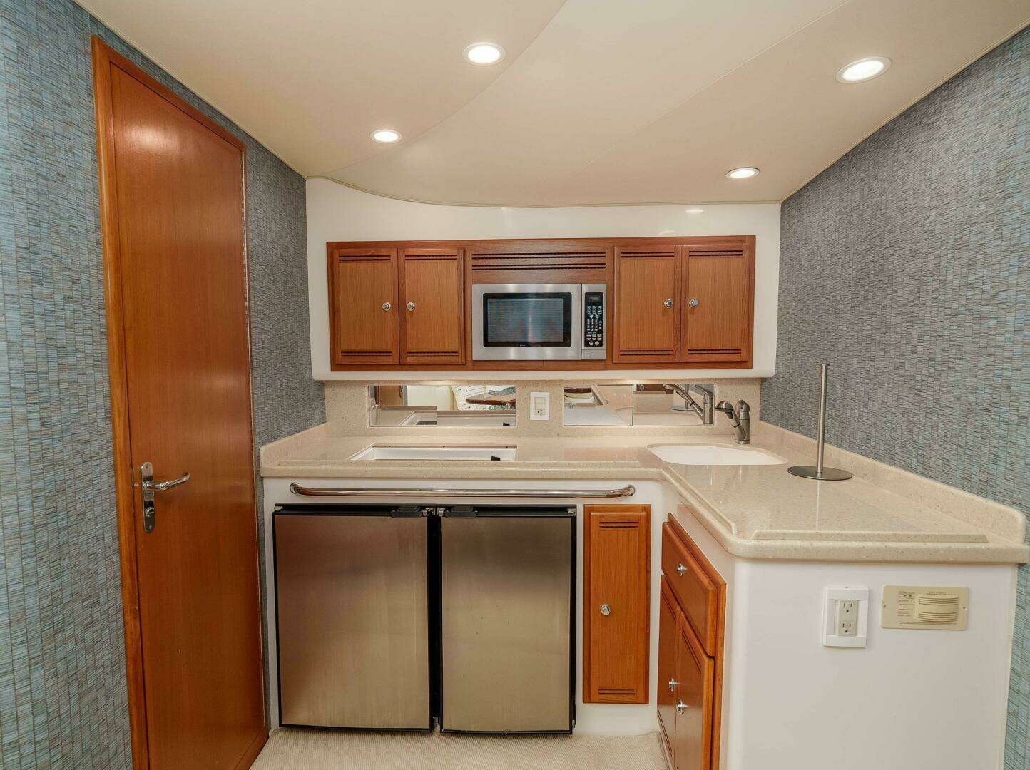 - Teak cabinetry throughout