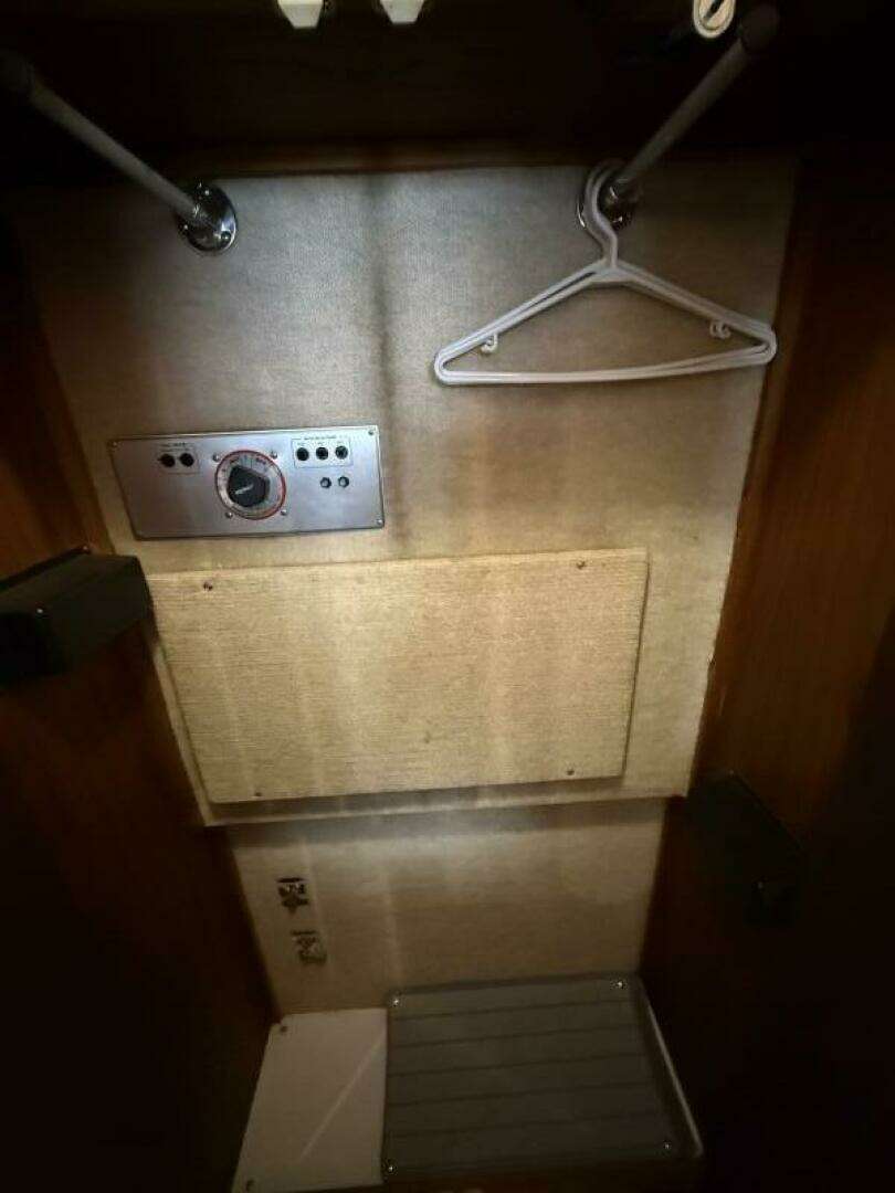 Aft-Cabin: Spacious master suite with a private head and shower. The angled berth provides easy walkaround access for making the bed, and there are ample storage lockers and drawers for extended stays onboard.