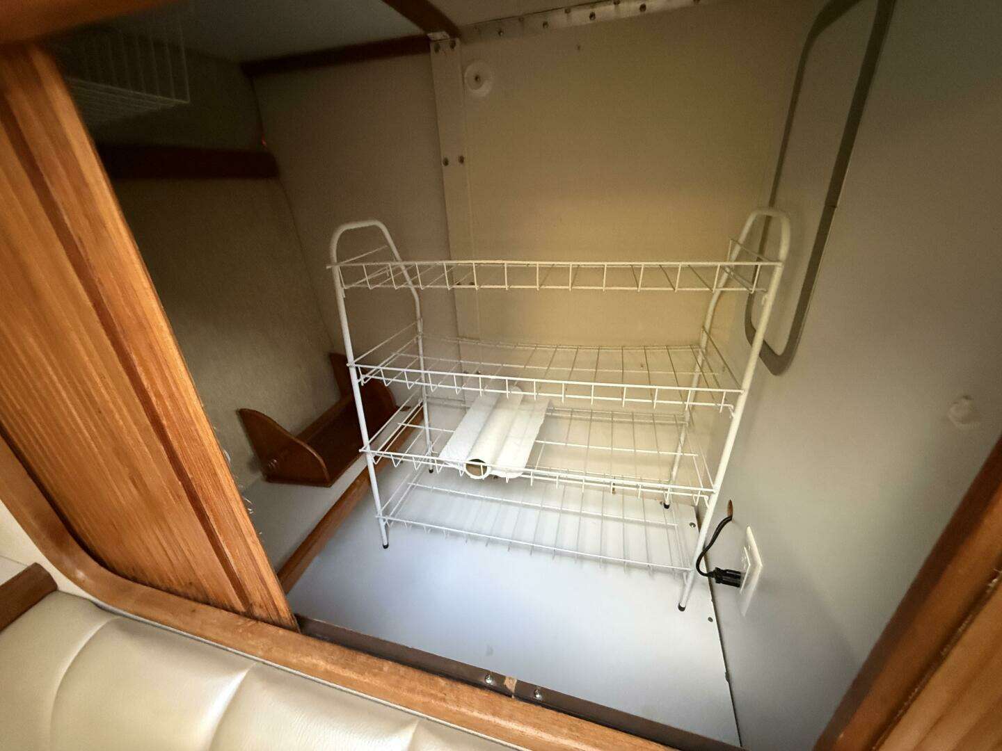 Dinette: Newer upholstery with comfortable seating for four. Converts to a double berth, expanding the boat’s sleeping capacity.