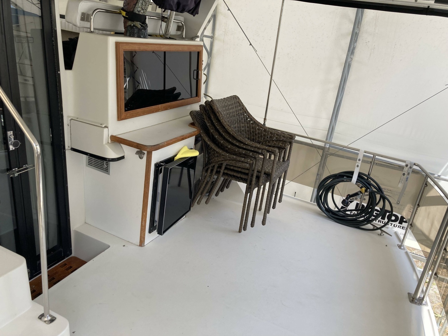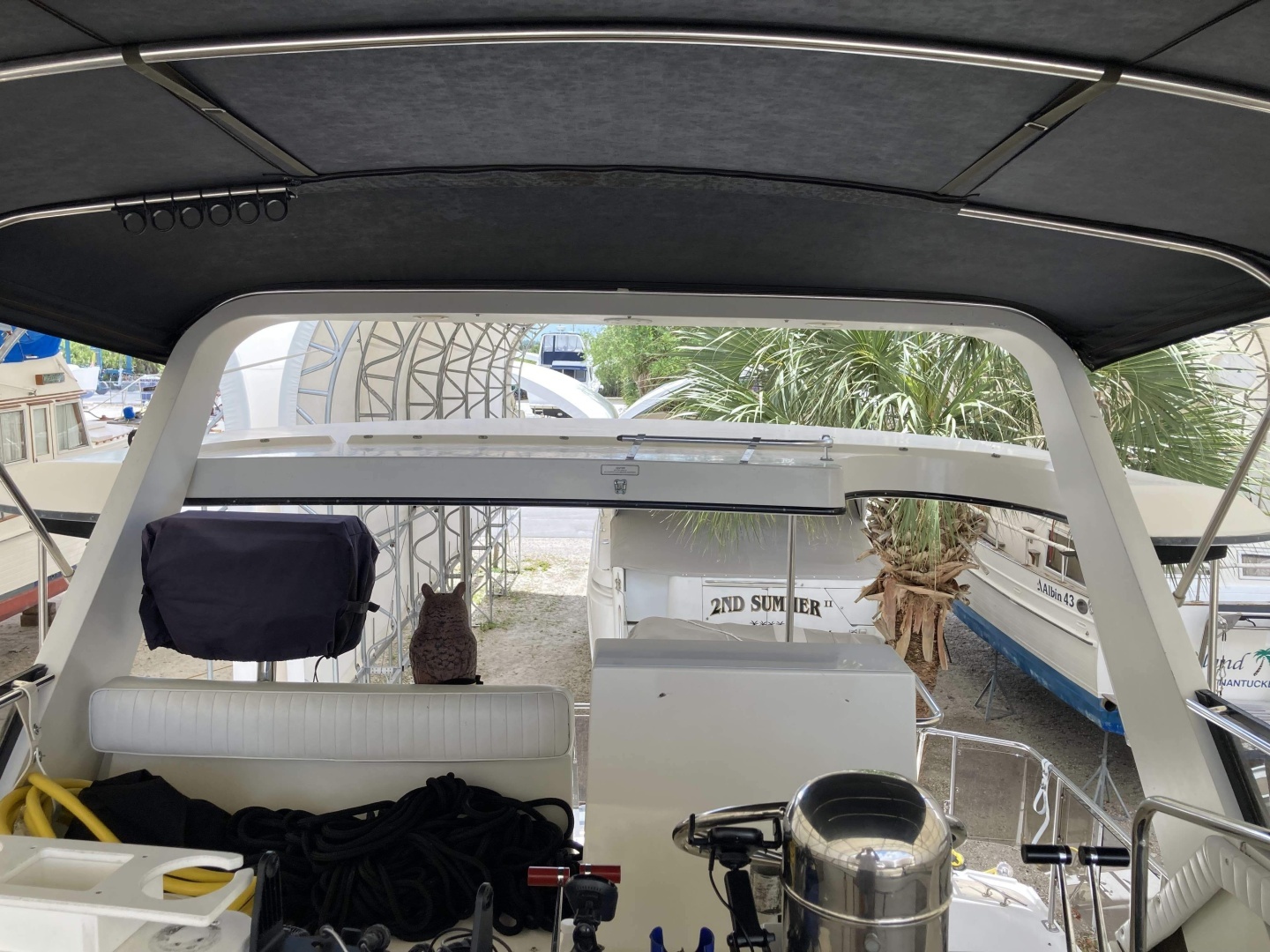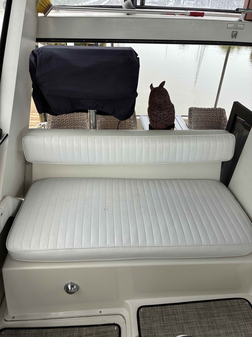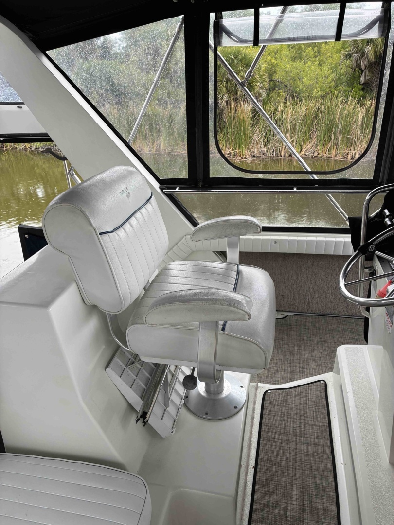 This maybe the cleanest and best maintained 38' Carver in Florida. She has been a fresh water vessel until 11/24. The owners have done a great job keeping this boat looking and working great.The boat comes with twin 350 HP Crusaders with only 1011 hours, generator with only 551 hours, air conditioning and heat, automatic anchoring system, two heads with showers, sleeps 7, full galley to include refrigerator w/freezer, stove w/oven, microwave, sink and great counter and storage space, full canvas on the bridge and mid deck, excellent electronics, very nice boarding steps from dock to boat, mid deck wet bar with fridge plus much more, see below.