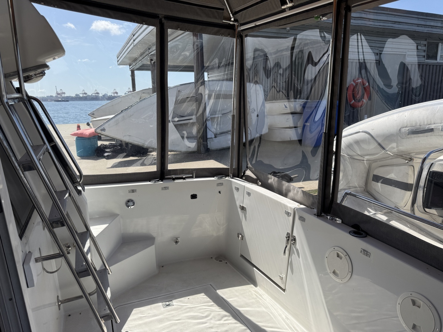 With both a full bridge enclosure and cockpit surround, this boat offers true four-season usability in the Pacific Northwest, significantly expanding living and entertaining space.