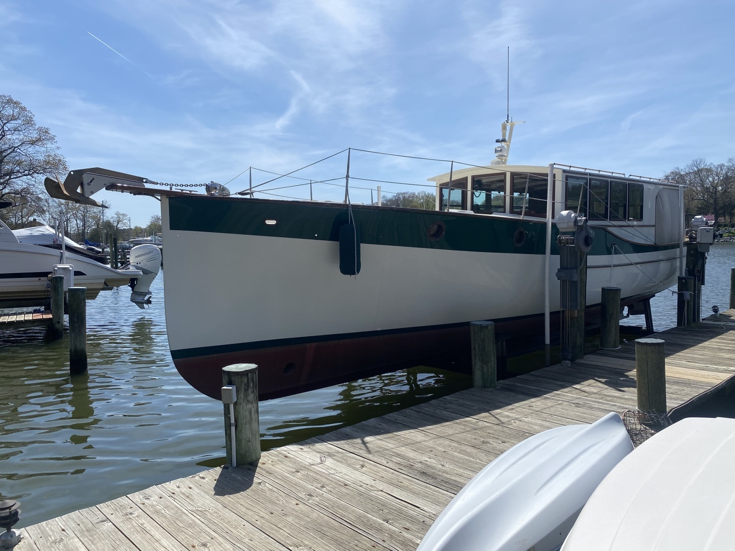Griselda, is a fully updated version of a classic made out of modern materials. This vessel has been lovingly maintained, and it shows when you walk up to her. Boat has a reliable, low hour diesel engine. Fully updated electronics, bow thruster, generator,GPS and much more. If you are looking for a bay cruiser,ICW or great loop put this incredible boat on your list. Lift kept and ready to cruise.