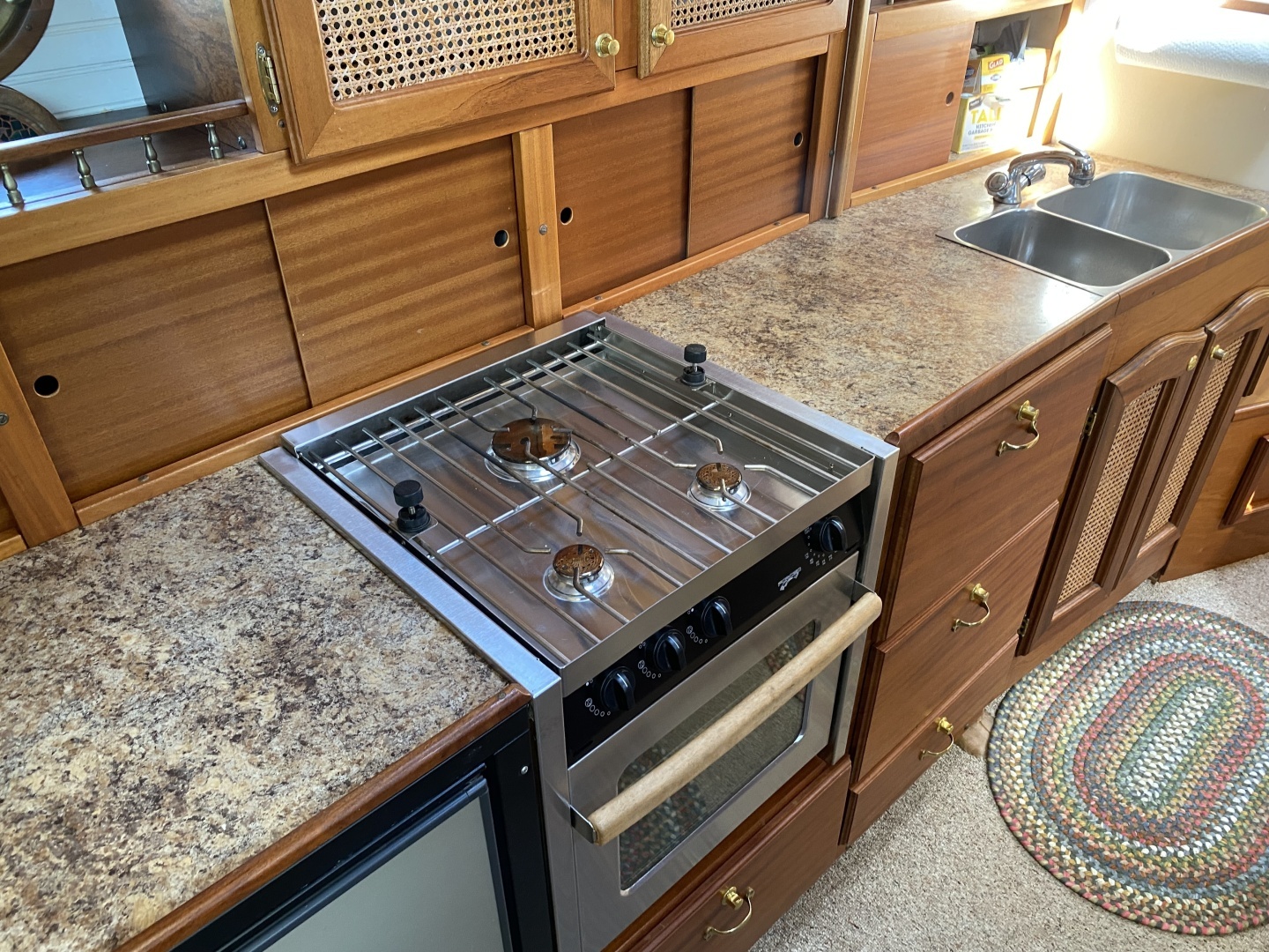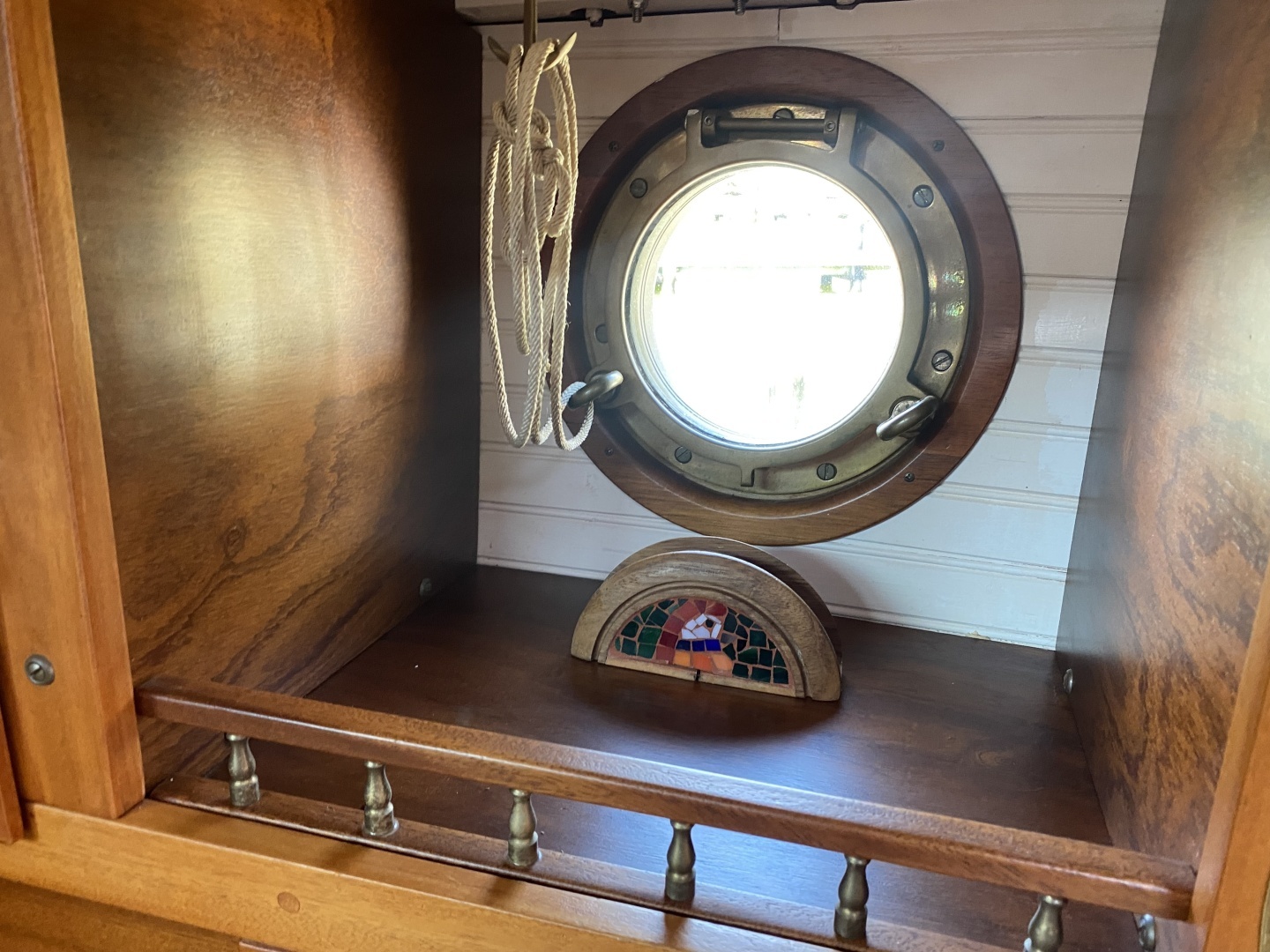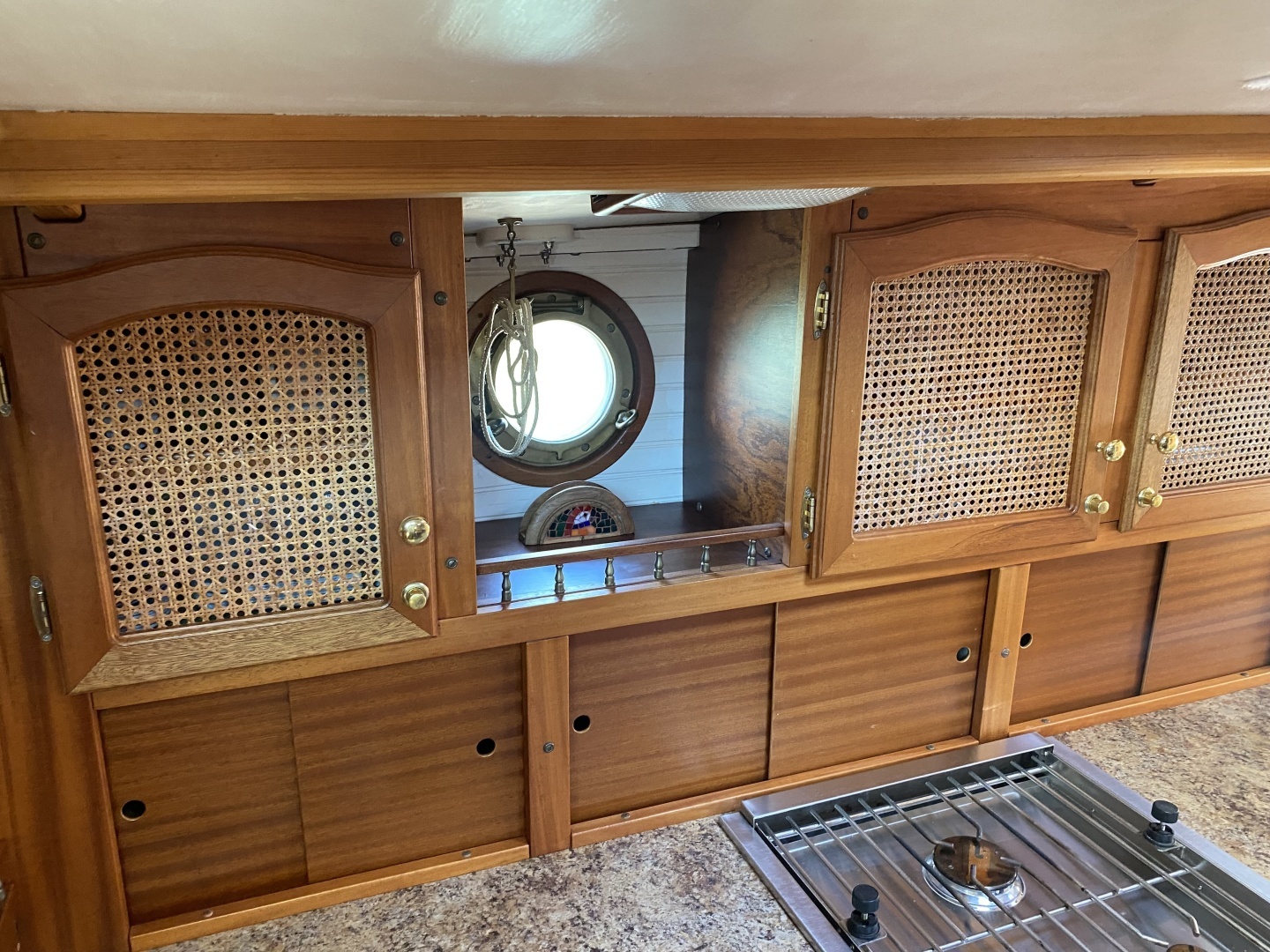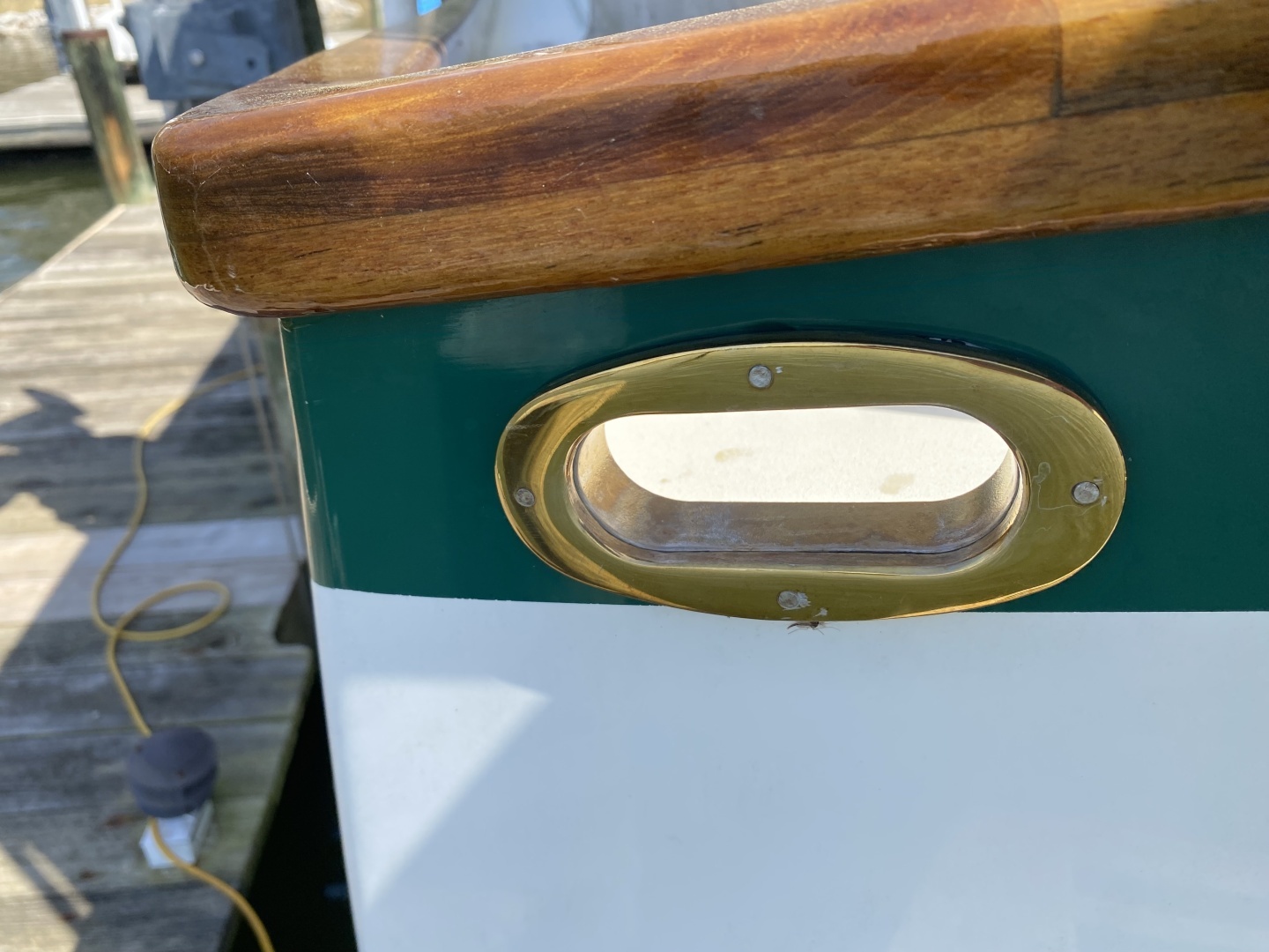 The vessel Griselda is a custom 38’ motor yacht which was designed by Tad Roberts as the “Yellow Cedar Classic 38” model which is a modern version of motor yachts from the 1920s such as those made by Elco . The hull was professionally built out of fiberglass by Classic Boats of Austin.